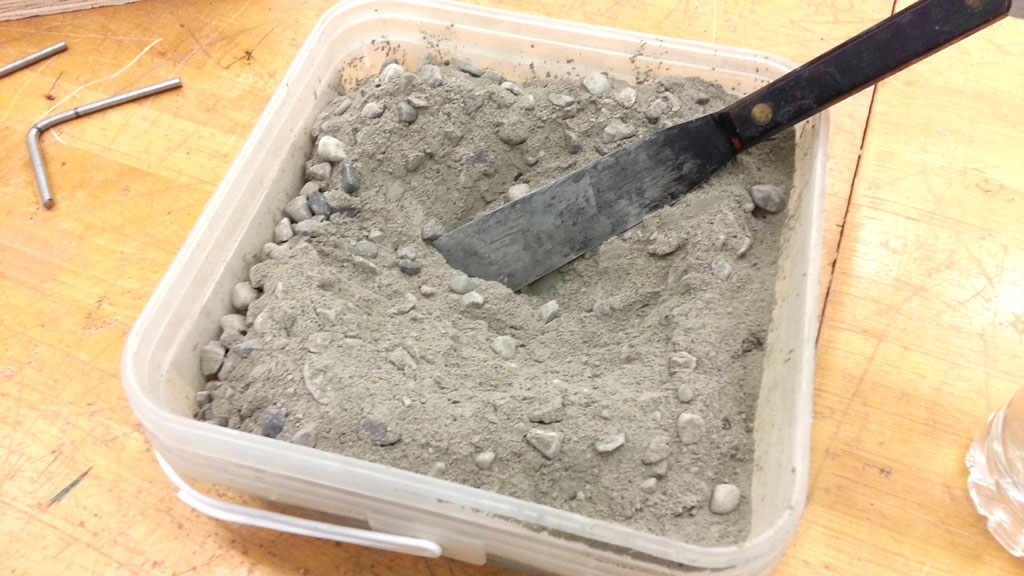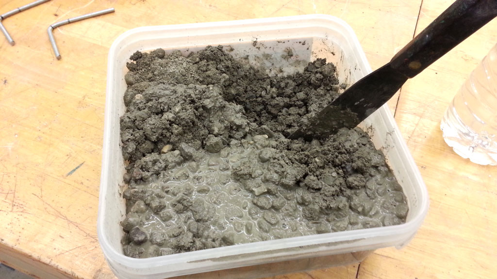 - Concrete - a mixture of aggregates such as sand, cement, and small rocks mixed with water which hardens like artificial stone