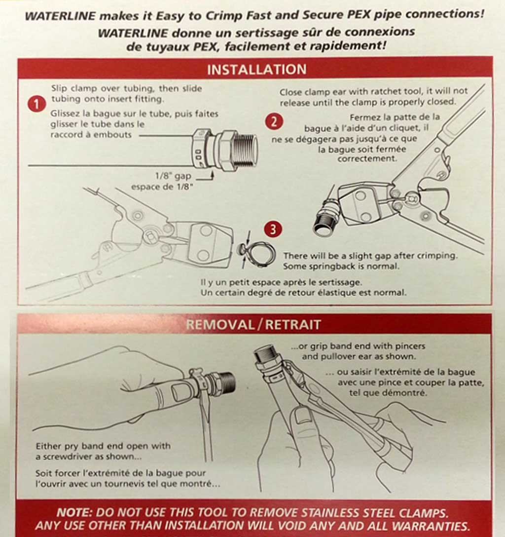 - Crimping Pex - Once you have all your tubing cut, double check and do a dry fit to ensure accuracy, then using the crimper and the 1/2" tubing crimps, crimp the T fitting into place on both the hot and cold water supplies and slide into place