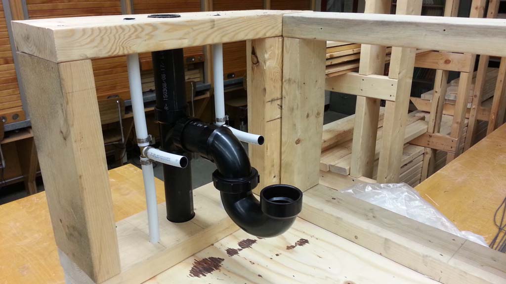 Students will explore the main utilities used in a home and install some basic drainage, water supply, and electrical to show and experience those types of trade installations. Students will use the pre-drilled holes for the sink ABS drain, the hot, and cold pex water supplies on the exterior 2*6 inside wall. Electrical will have two receptacles, a light switch and wall lamp installed in the interior wall to show some electrical devices and their wiring commonly found in residential homes today.