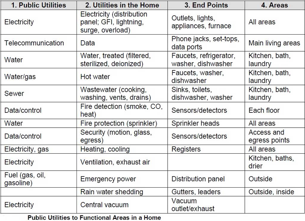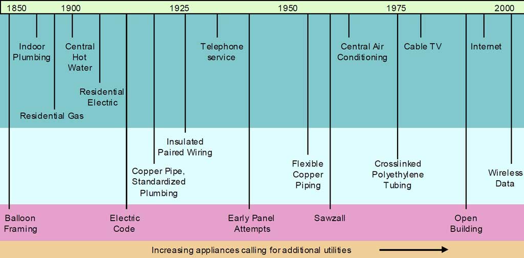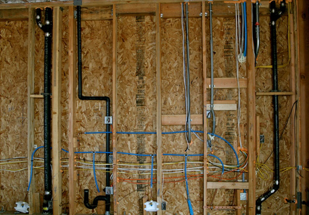 With the rough-in carpenters finishing the frame of the building (platform type, one of several other building types, but the most common), there are several utility resources used in the modern home such as electricity, data, plumbing, heating, ventilation, & air conditioning (HVAC), and gas. As homes have progressed over the last century, they have been made larger, more complex, more utilities, eco friendly, and require more distribution of these utility services/resources. These utilities services/resources are worked on by related trades such as plumbers, electricians, gas fitters, HVAC mechanics, etc., all of which are governed by the the Ontario College of Trades.