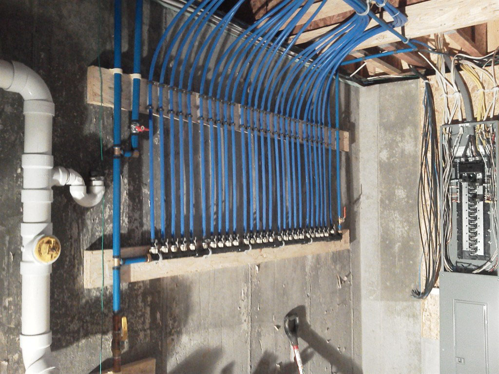 supplies water to a fixture. Using a manifold system like this makes it simple to control the flow and/or shut off the water supply to one fixture without shutting off water supply to the whole house giving the homeowner flexibility.