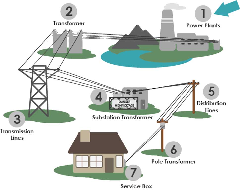 Generally electrical supply is brought into a home by either a underground or above ground wiring, through a meter, then to a