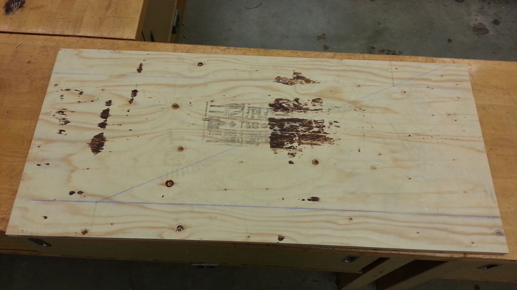- Sub floor to rim and floor joist, (see sample 5 for sample visual) - using the black floor screws, use about 6 to screw sub floor to rim and floor joist making sure plywood overlaps the straight long edge while the other two straight edges are flush