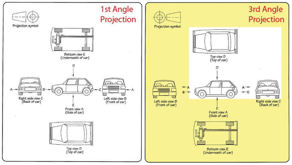 When deciding which view is to be used for the front view, three rules are used to determine this in the engineering field as a standard. The reason for these three rules is to prioritize and show the best views, create a standard set of views for any object, keep the view the least complicated, and make use the paper space standards, usually landscape. Objects in the real world, say for example a car has a front view, but the orthographic engineering front view most likely will be the drivers side in third angle project standard used here in North America. You must look at the object you are going to draw or sketch and decide which view shows the:
