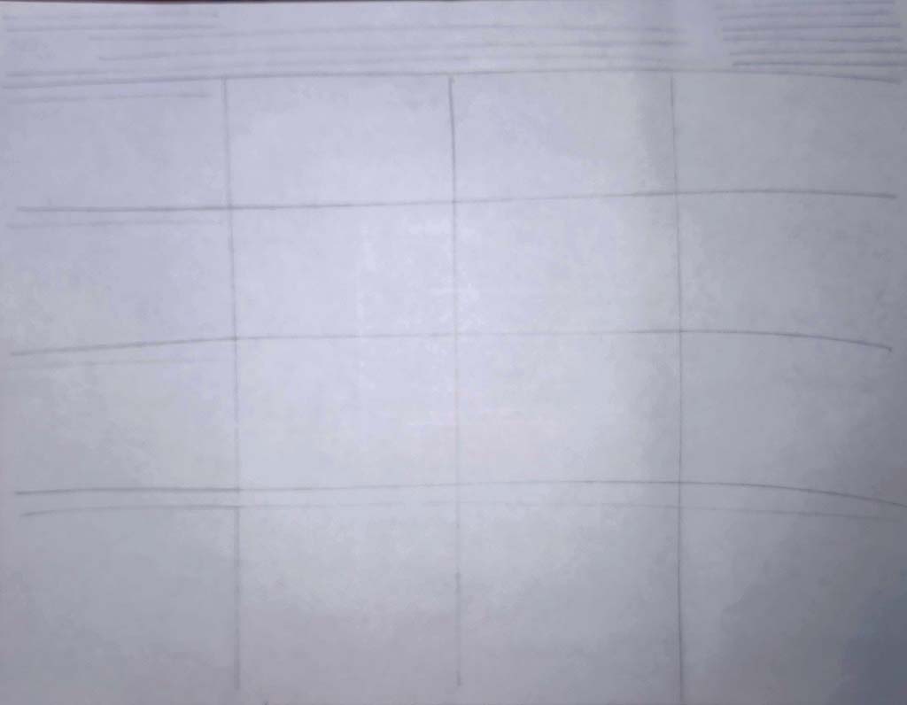 - Using a full blank page in landscape format, (more details in the ideas/investigation section above for more support) start sketching the layout comprised of the header space (create light guidelines for all of your text to put in for later), ortho starting point and views (remember to maximize paper space and take in consideration the shape, size, scale, and spacing) using light construction lines as learned in the previous sketching assignments (Note: your front view and layout have already been identified for you when completing this graphic note, but in the future you will need to figure this out on your own)