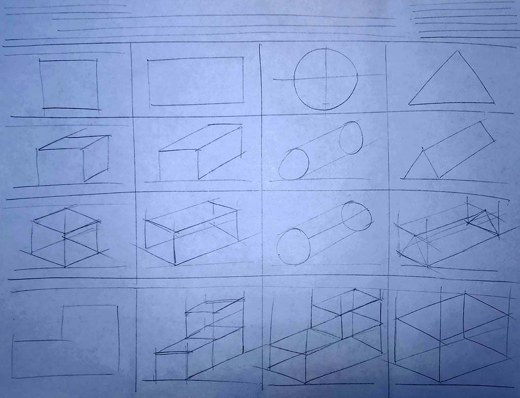 - for sketching 3D shapes, use a light construction line for the base line to help with shape creation