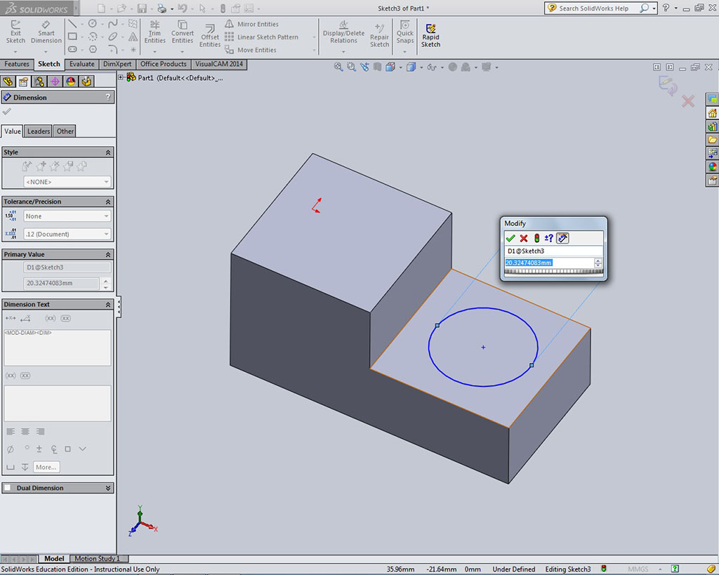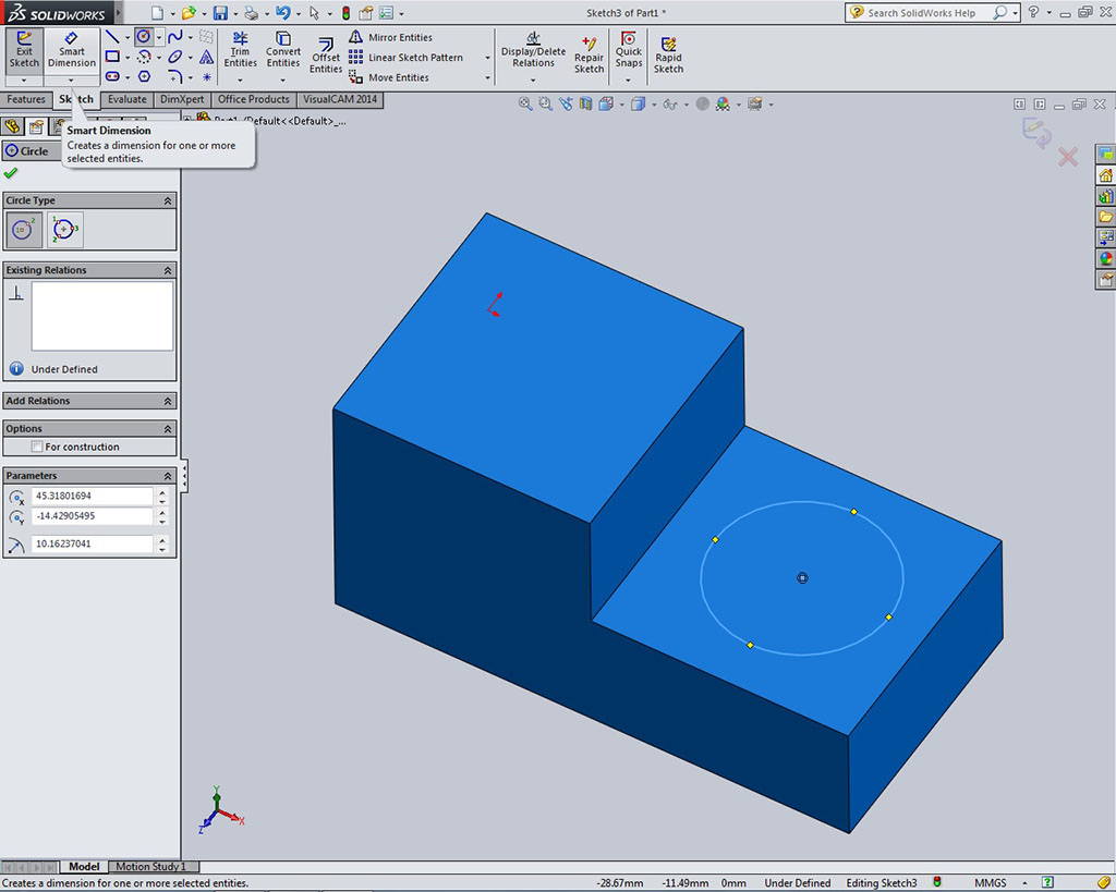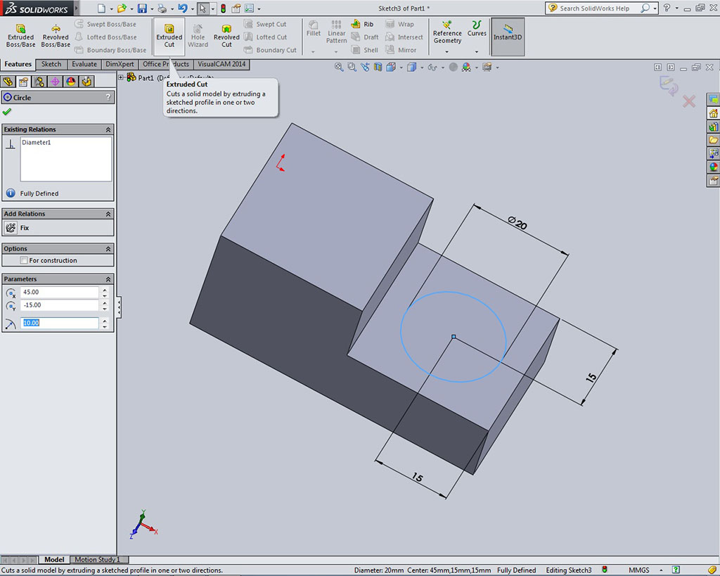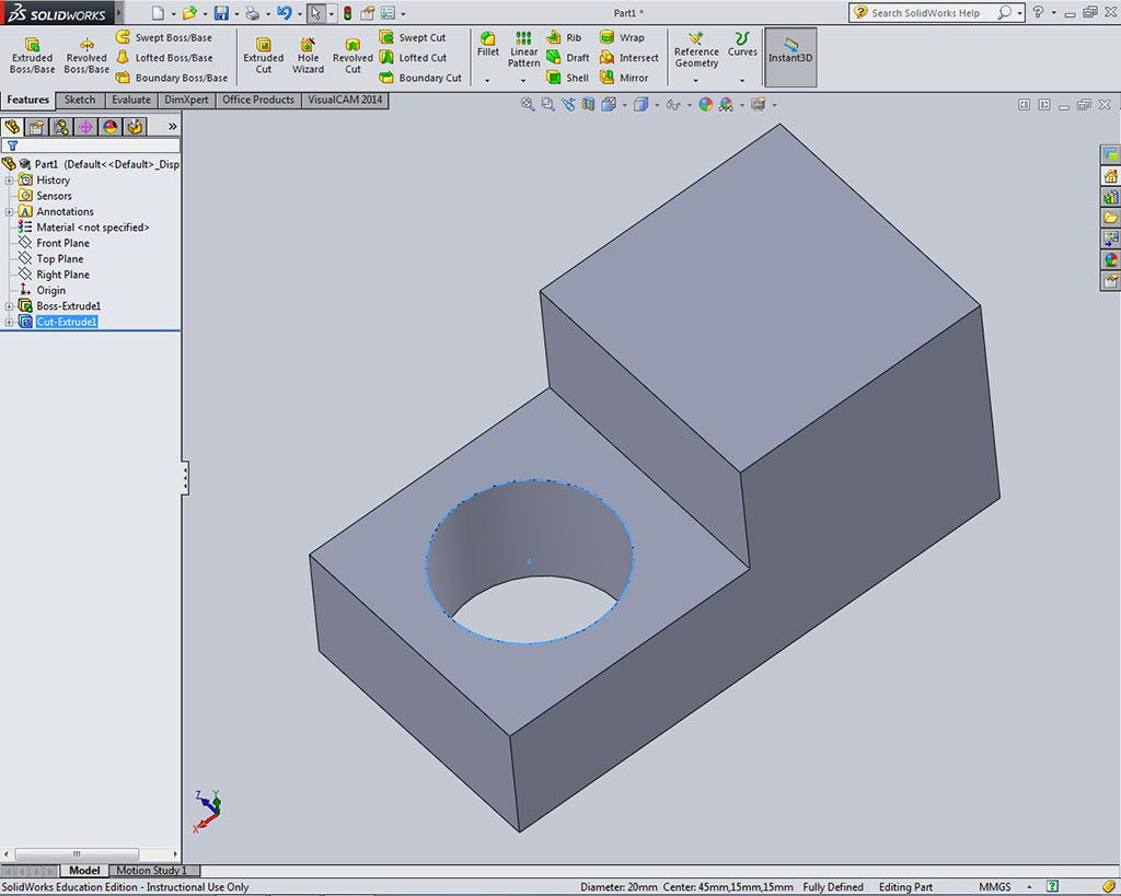 Creating 3D model in SolidWorks with the step block should be straight forward using the steps, pictures, and instructions given. Students should be aware of key information as they go through this step block tutorial such as parametric driven, integrated 3D CAD/CAM/CAE solution, used by discrete manufacturers for mechanical engineering, design and manufacturing. With all of the previous experience with sketching, drawing views, selecting the front view, dimensioning, 2D drawing, and 3D introductory modeling, this should be easy to pick up the basics, as you are already familiar with the previous programs used. The tutorial in the next section will guide you step by step to support the creation of your customized key ring accessory.