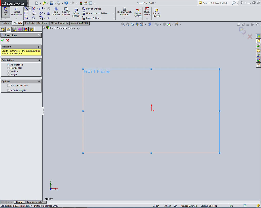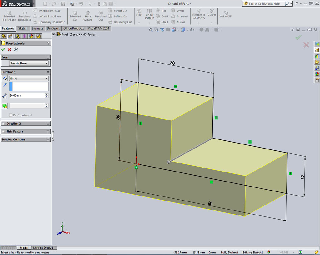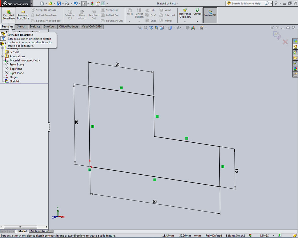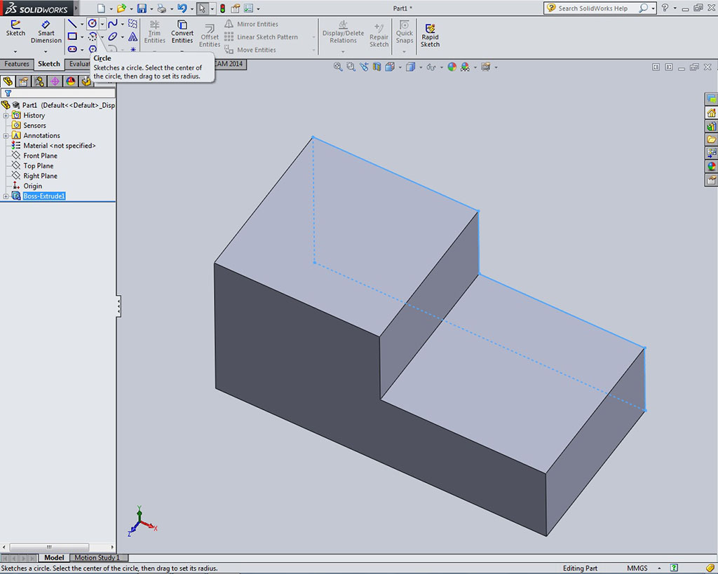 Create a simple step block following the steps and support pictures below. As deceptively easy this assignment may be, by following the steps, keep in mind the underlining concepts in front view selection, 2D sketching, 3D modeling, dimensioning standards, and common sense reasons why the project is done they way it is with respect to Engineering standards and communications of ideas.
