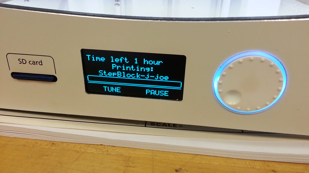 - Control Panel: Rotary dial is used to select Print, then you rotate to find your G-CODE file which will show the print time and amount of filament plastic will be used, press the rotary button to start print. Heated glass platform should be cleaned using a little bit of water and paper towel if needed