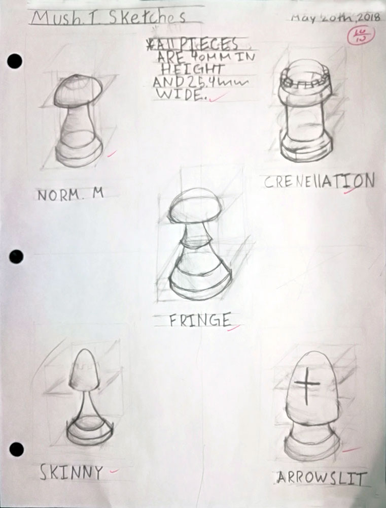 - Technical Design students to come up with 5 sketched thumbnail ideas for each chess piece, for group vote on final design