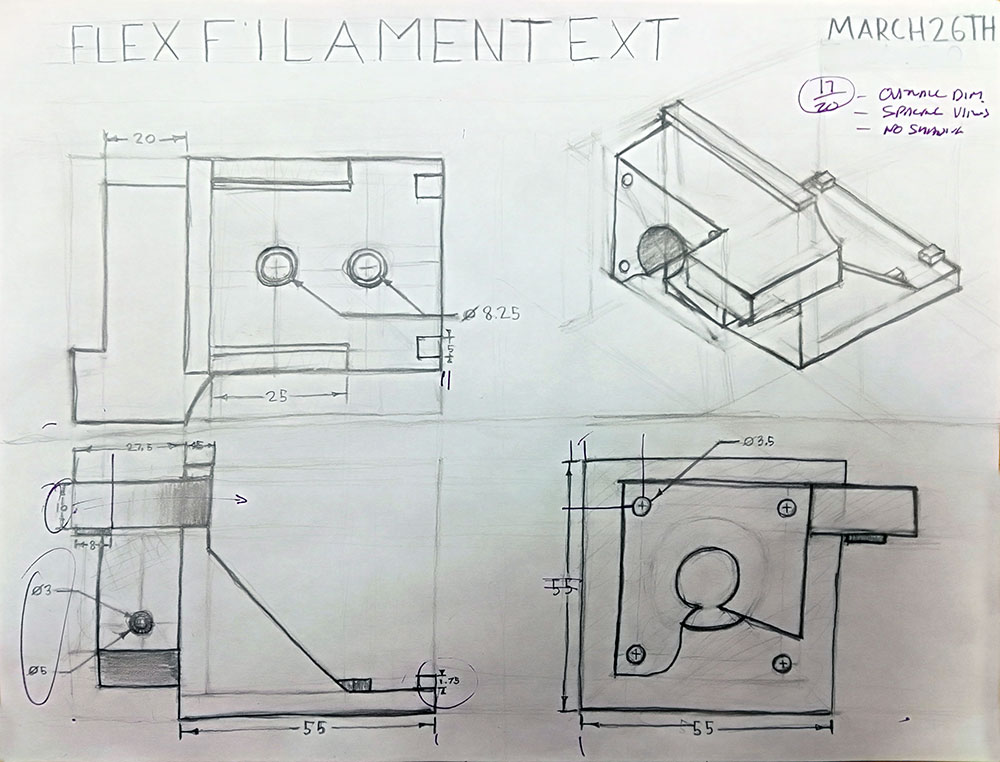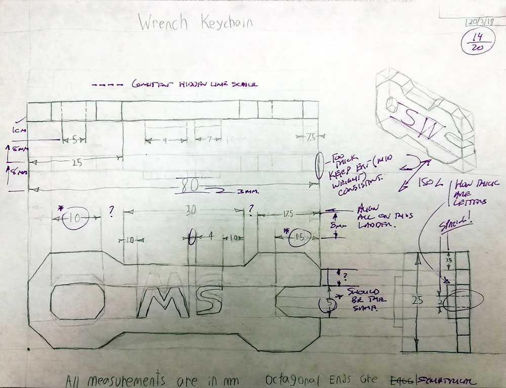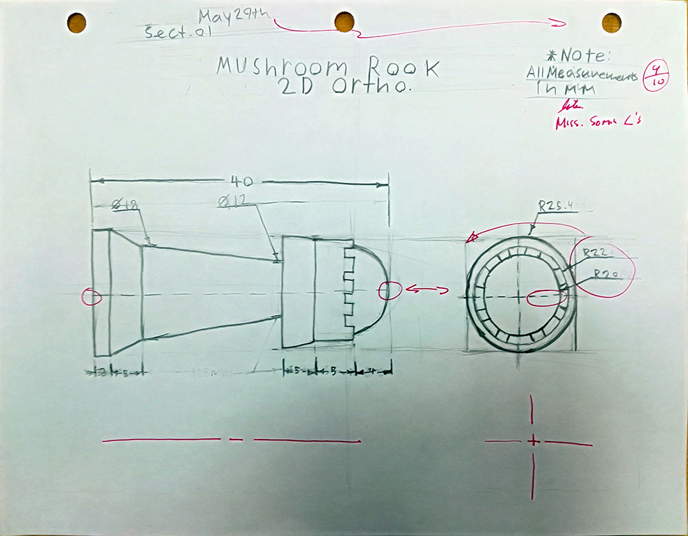 - Technical Design students to create orthographic sketch of final design with dimensions for group refinement and finalization