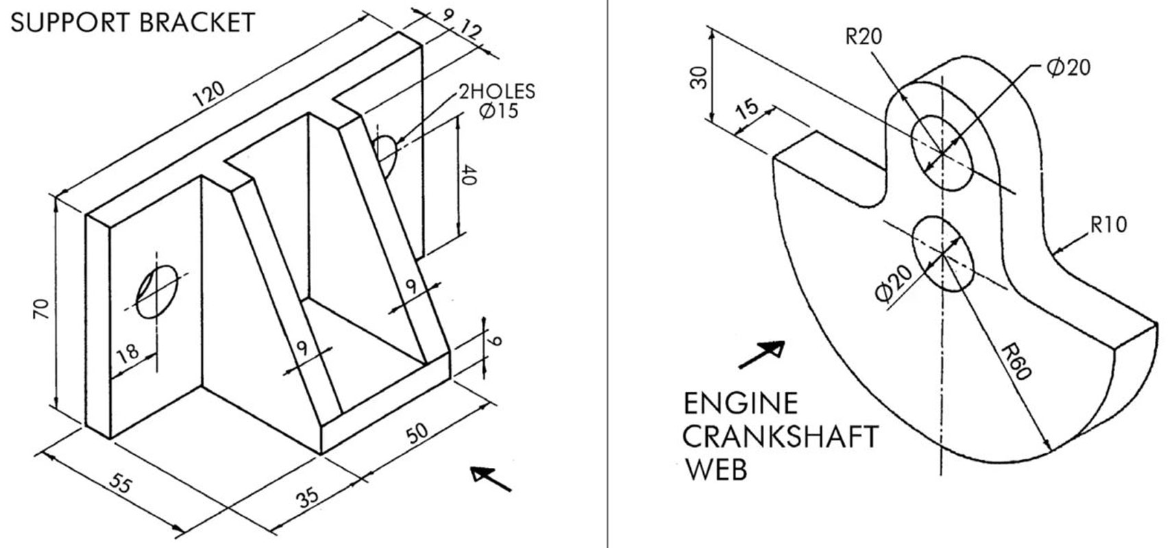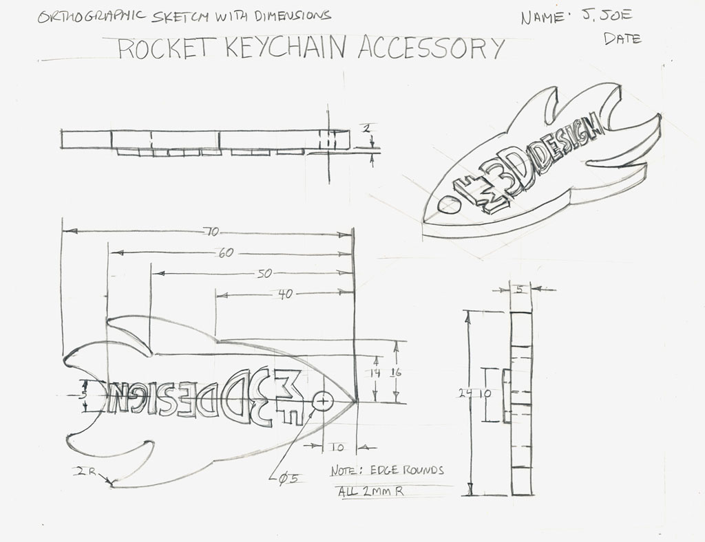 Below are some tips that you can use when sketching objects with orthographic views and dimensioning