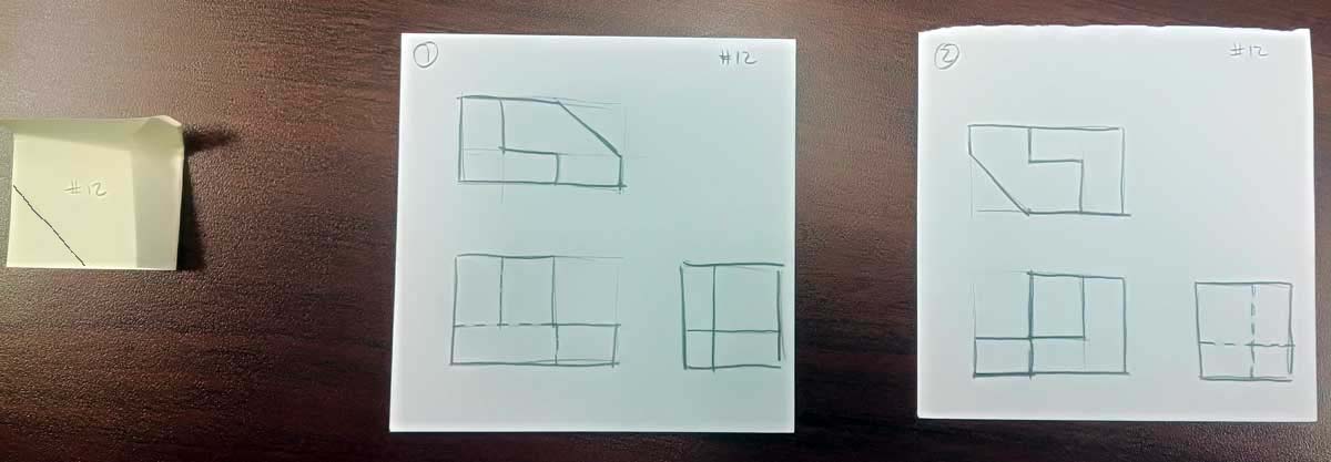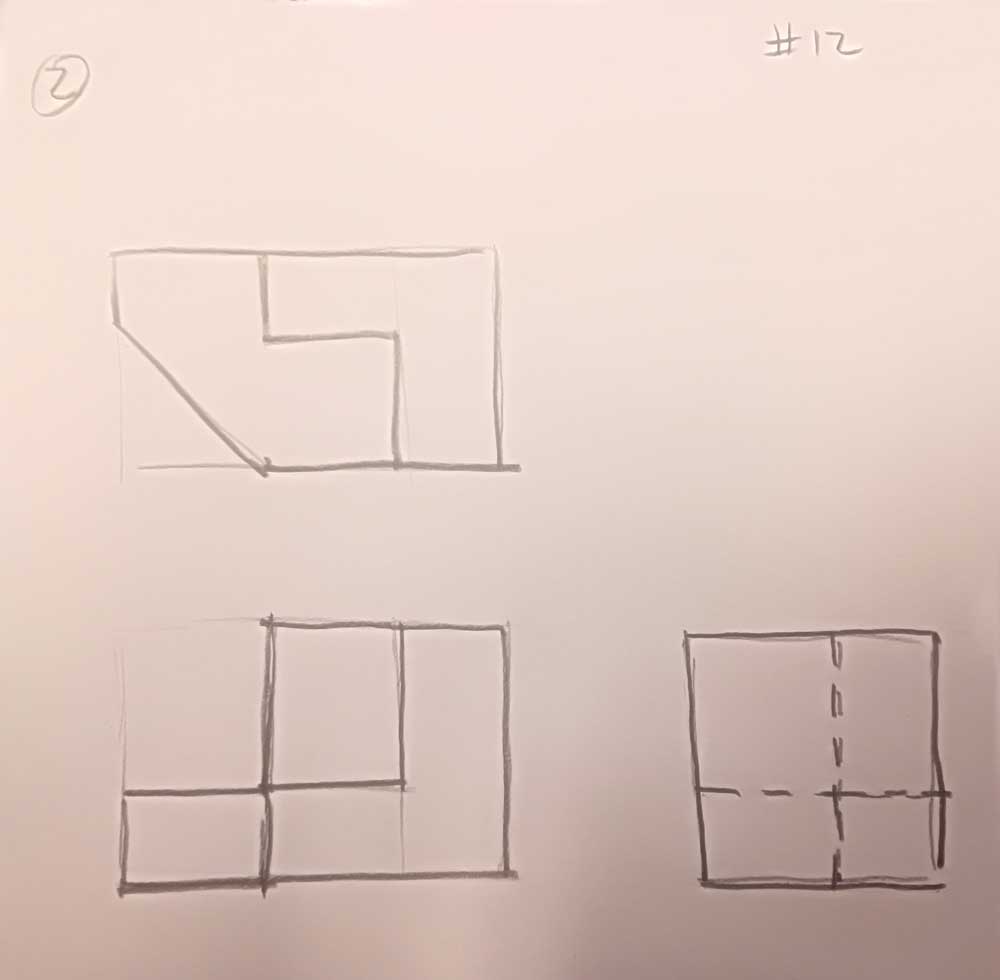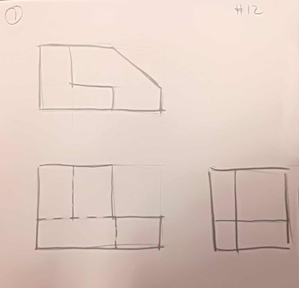 - Block in your views using construction lines starting with your front view, then your spacing, top view and right side view leaving room for your isometric view