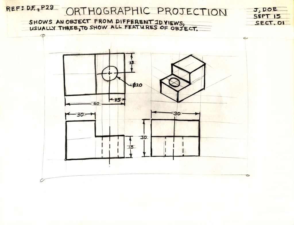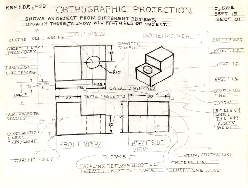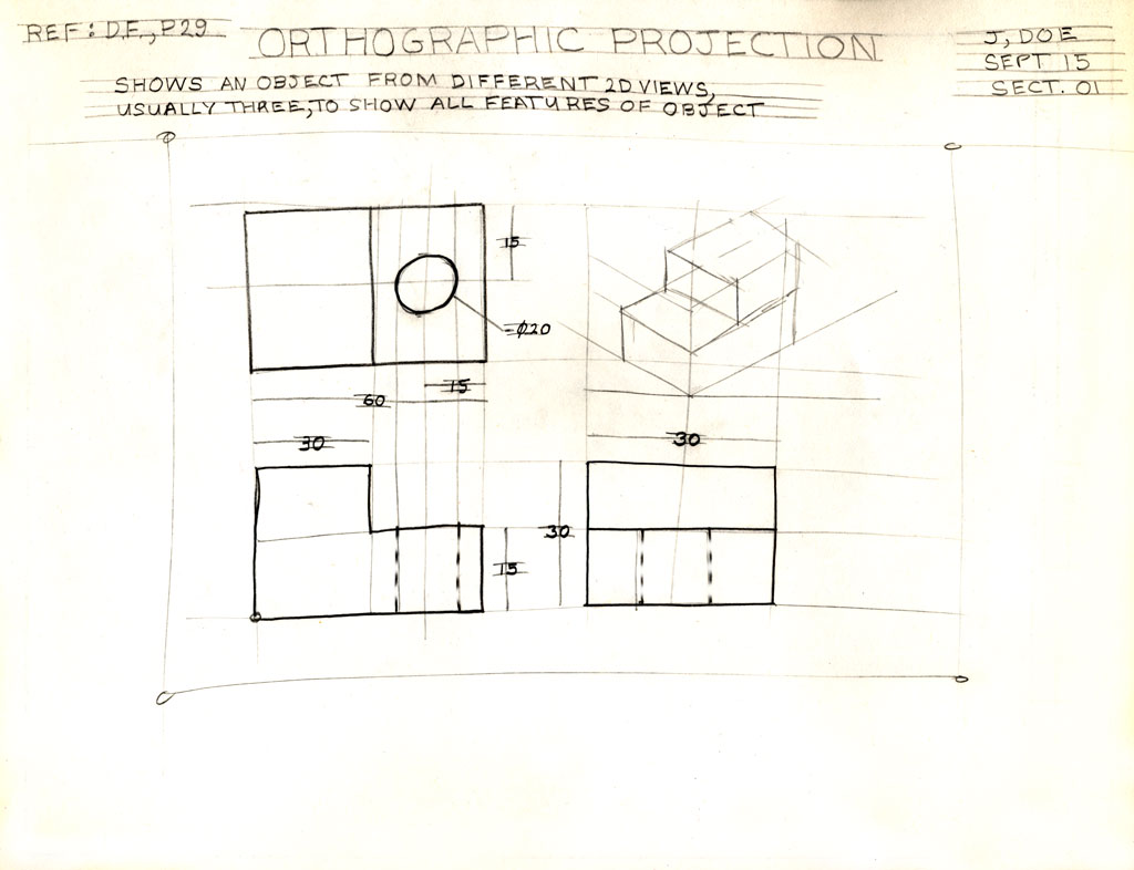 | Orthographic sketch - layout, views, technique, dimensions, and isometric | 30 |