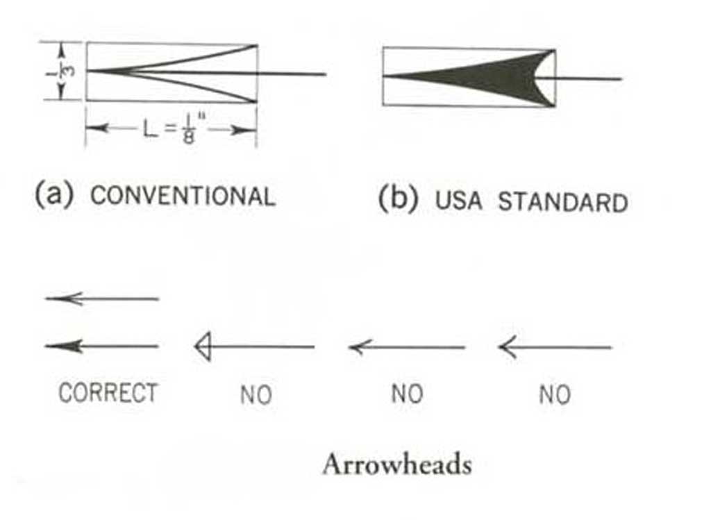 - Ensure arrow sizes are thinner, ratio of 2:3 - width to length, and ensure they are touching extension lines