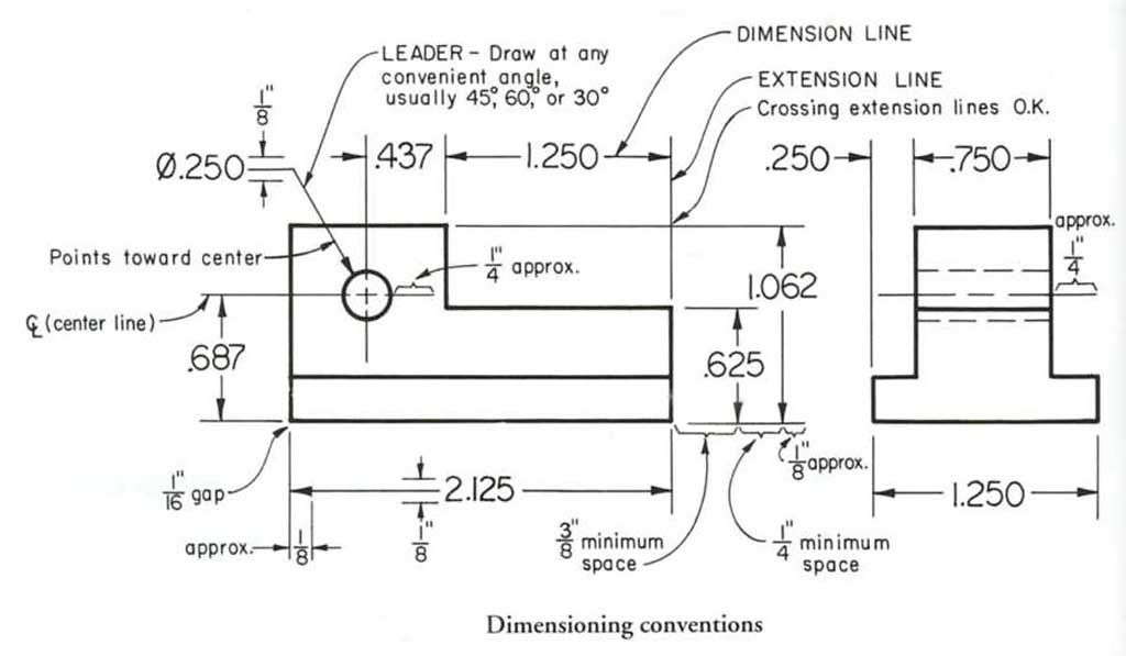 - Overall dimensions should be furthest out with detail dimension in between object view and overall