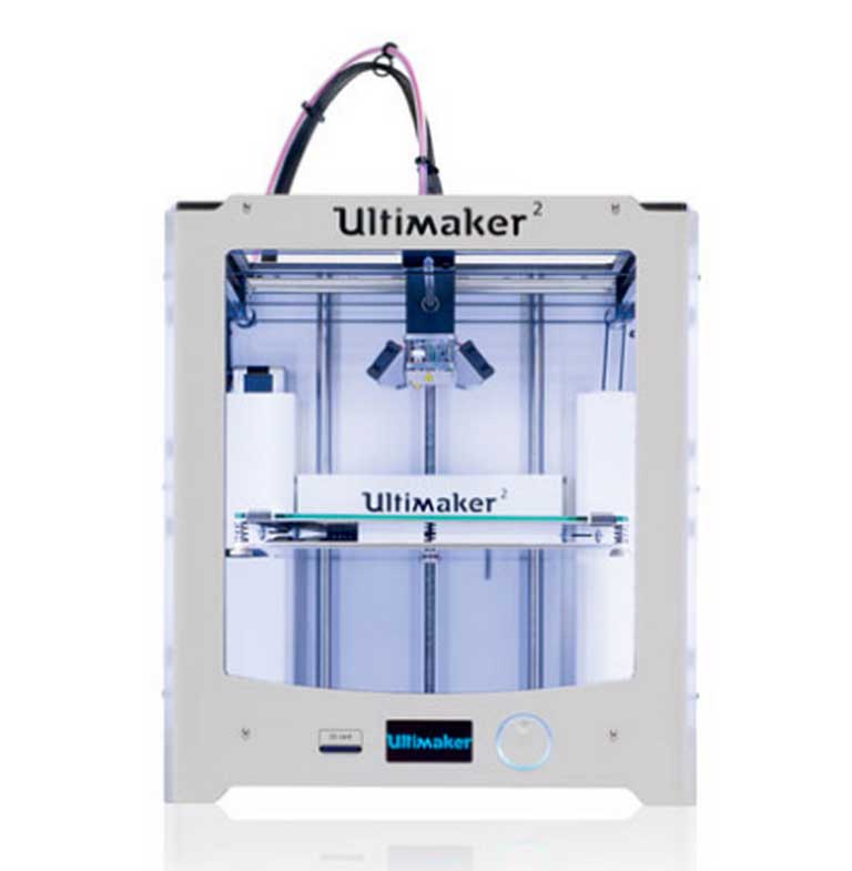 With the Ultimaker 2 3D printer, you will be able to print your design in 3D. It does this by melting plastic it draws from a roll through a plastic tube into a heating chamber that melts the plastic and the head is controlled by an x/y axis bars and servo motors which the printers controller runs based on the G-CODE of that object . Each layer is controlled by the Z axis, A little history and general information can be found here. Settings and maintenance can be found in the