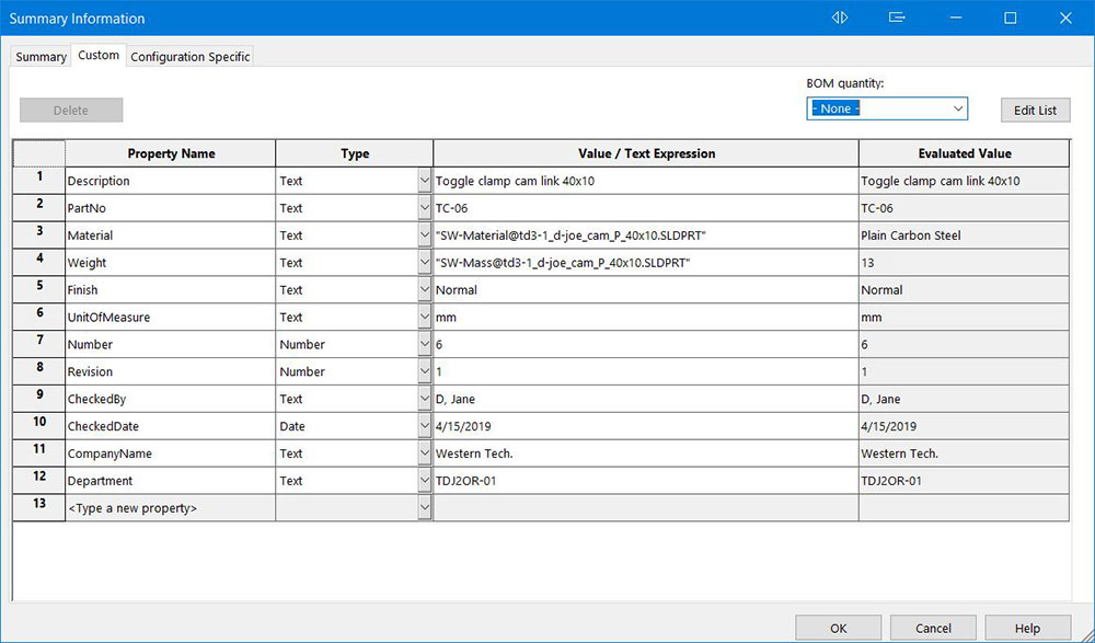 - cut list table based on ISO - right click on drawing view, select tables, then select cut list table