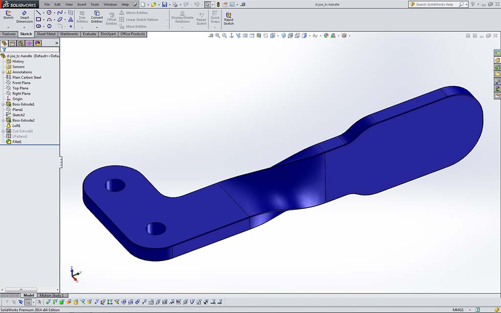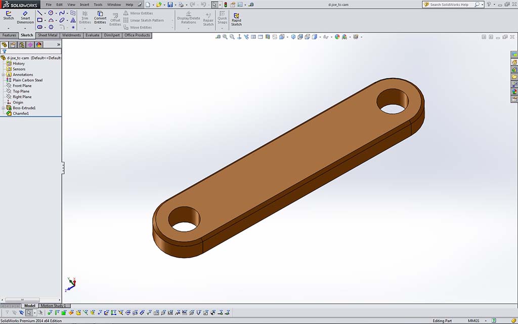 Looking at Sample 5 2D Sketch above, you will need to start creating a 2D sketch similar to the one in the picture. In order to know the exact dimensions for that object you are creating, eDrawings (a free CAD model, assembly, and drawing viewer already installed on your computers in class) can be used to get the frame details you need to draw your frame. Using eDrawings is intuitive and has a lot to offer such as
