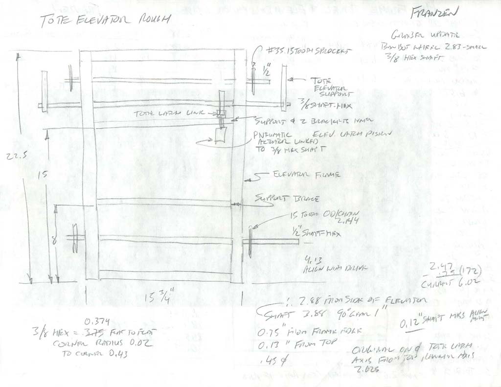 With the main tote elevator mechanism done, it will need support and a drive system to run it. It makes sense to focus on the related function before working on/ creating another function.