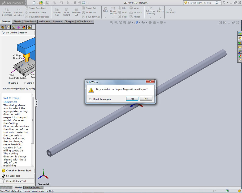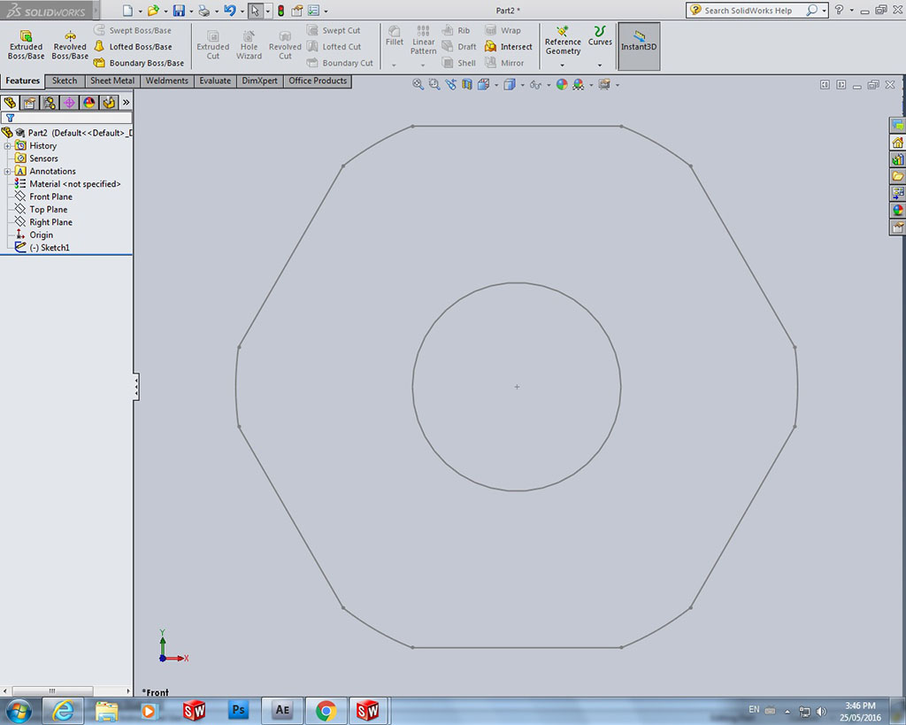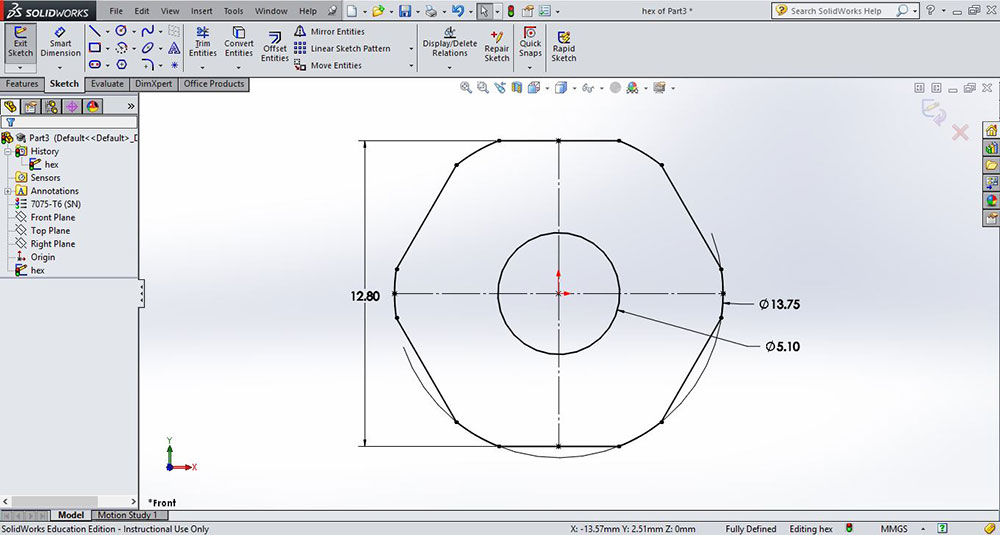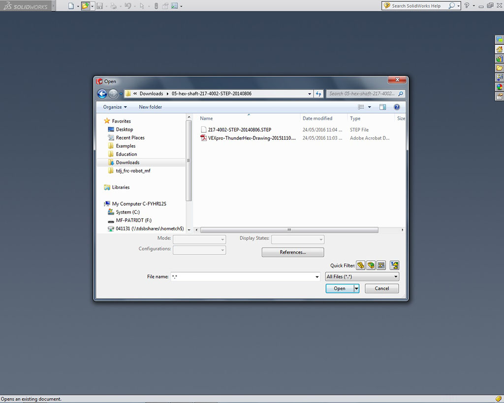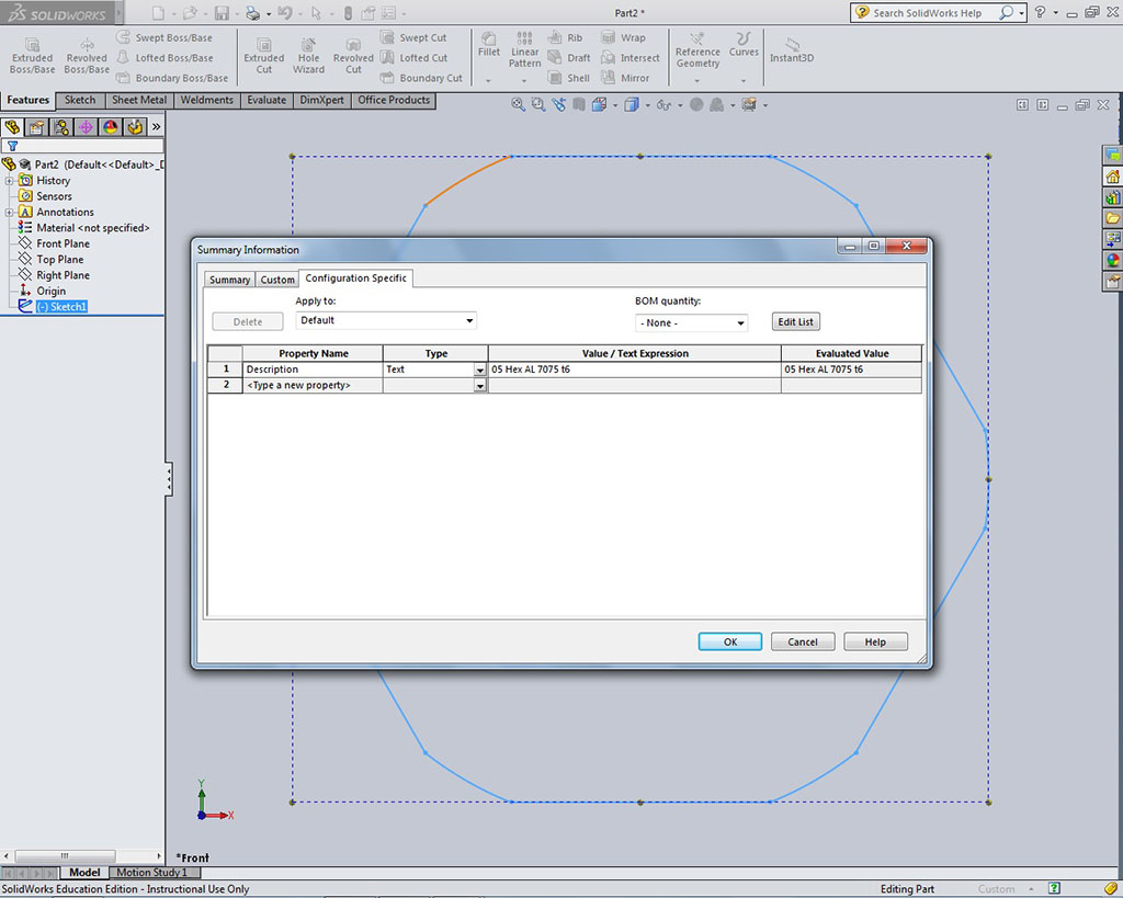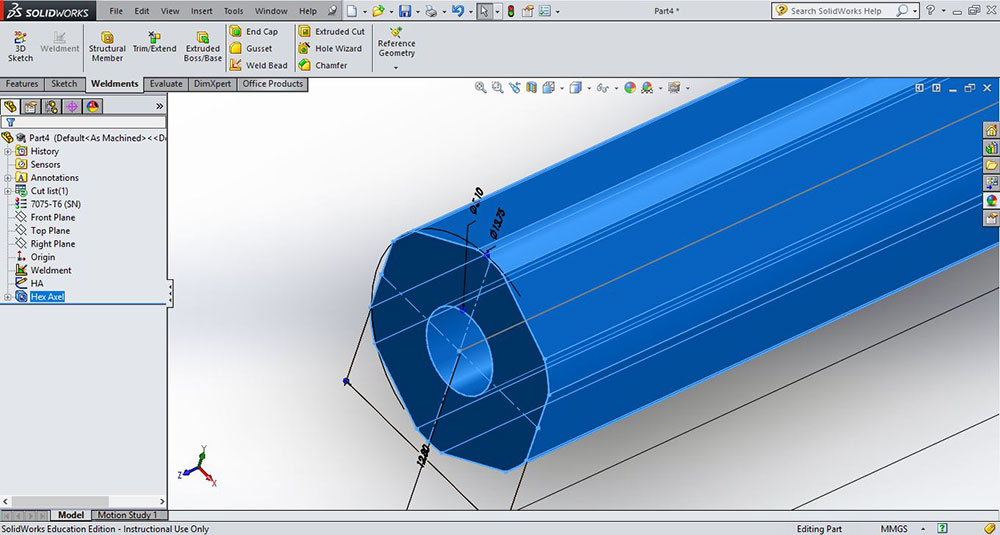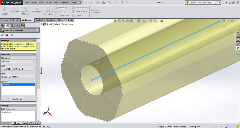 - TOP - Importing STEP File (Hex Shaft Stock) into SolidWorks, and Creating a Weldment 2D Profile