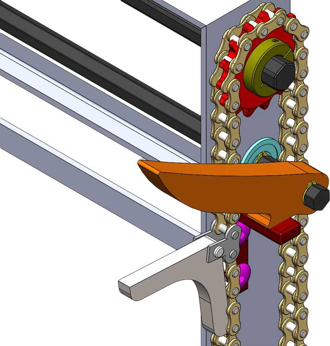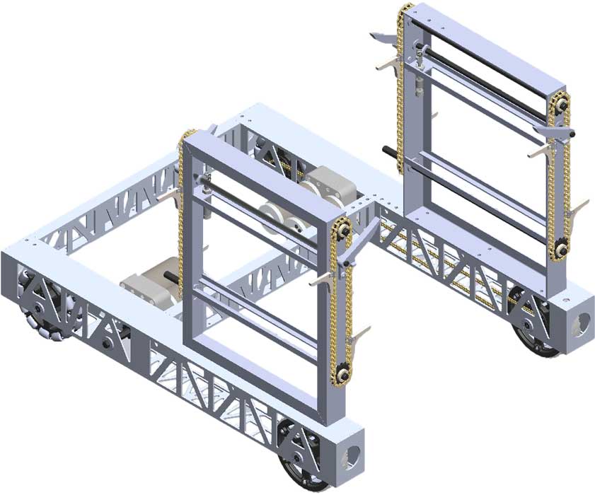Finish the elevator system by completing the elevator drive, support frame, and tower. Stacking totes must be quick, robust, and efficient to maximize the ability for speed. It also must have torque to handle the load as it collects totes, as each additional tote adds to the weight that has to be pushed up.