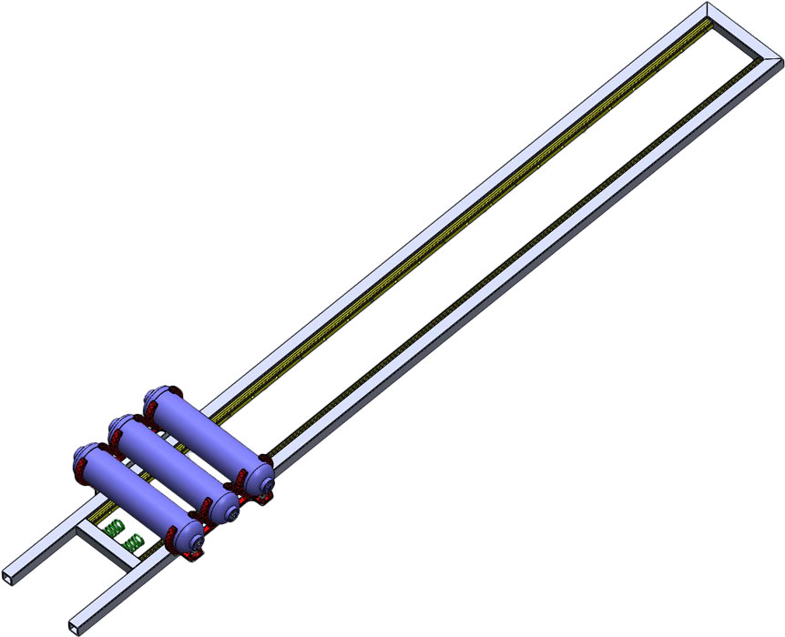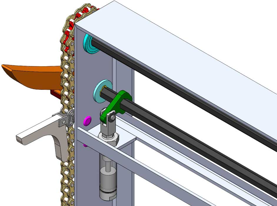 The gripper tower slide in conjunction with the gripper were designed to accommodate collecting six totes with recycling bin on top and also be with-in the maximum height tolerance allowed. The purpose of the gripper tower slide is to allow the gripper to freely travel up/down the track slides. These track slides are mounted to the inside of the two vertical aluminum RHS pieces, to stabilize the 6 totes and recycling container as they are being collected.