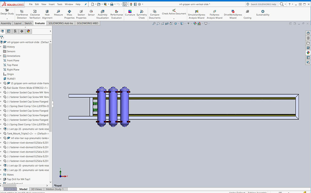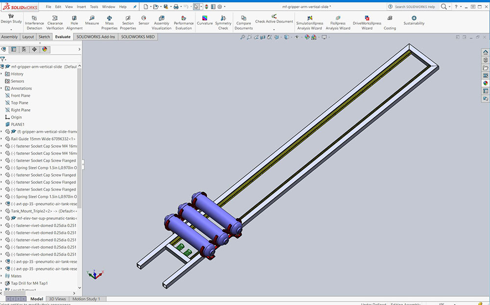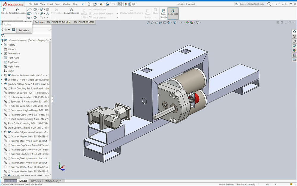 Now having created the robot frame in the last unit, and in this unit, adding the drive elevator system including lift, mid drive, upper frame support and gripper tower you have had the opportunity to work with more complex assemblies, create more parts, practice working further with folders and file organization, building virtual mechanisms and making more use of Solidworks. Knowing and practicing these skills, steps, and knowledge will further empower your confidence in the design process steps and understanding, being able to communicate more with complex designs, and using Solidworks to create and show those ideas!