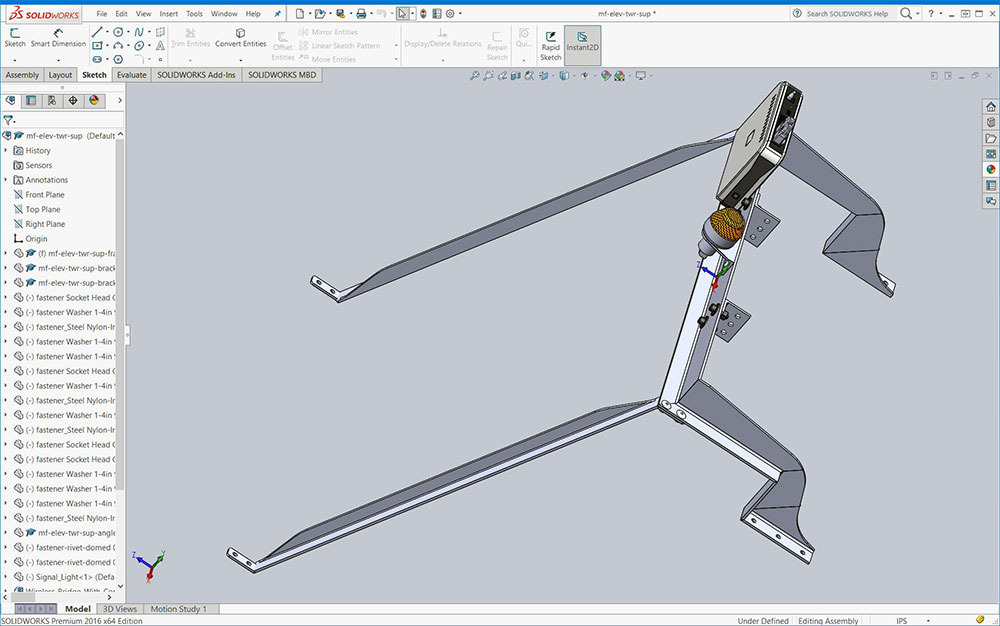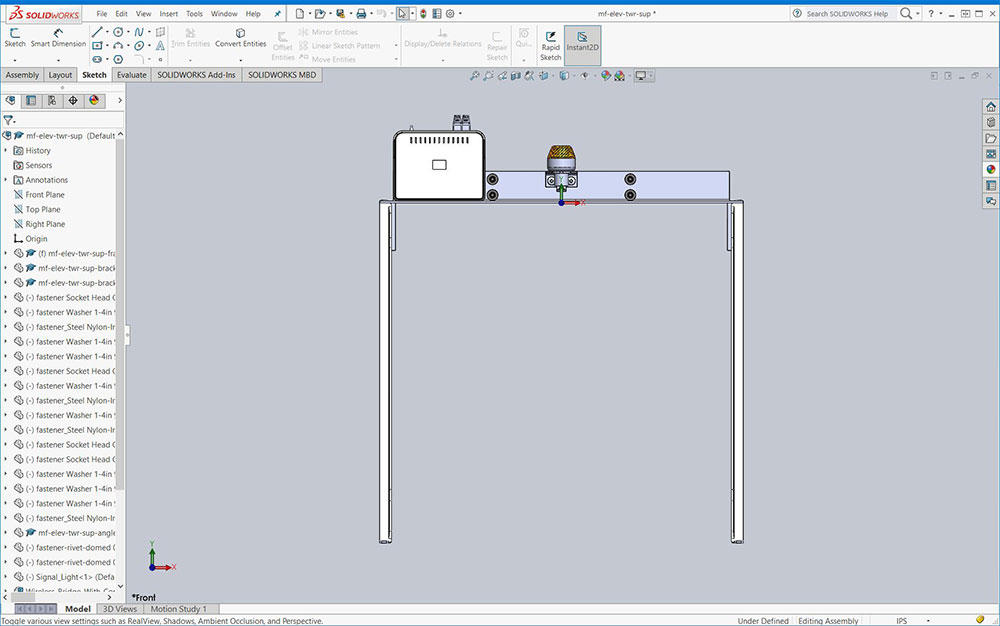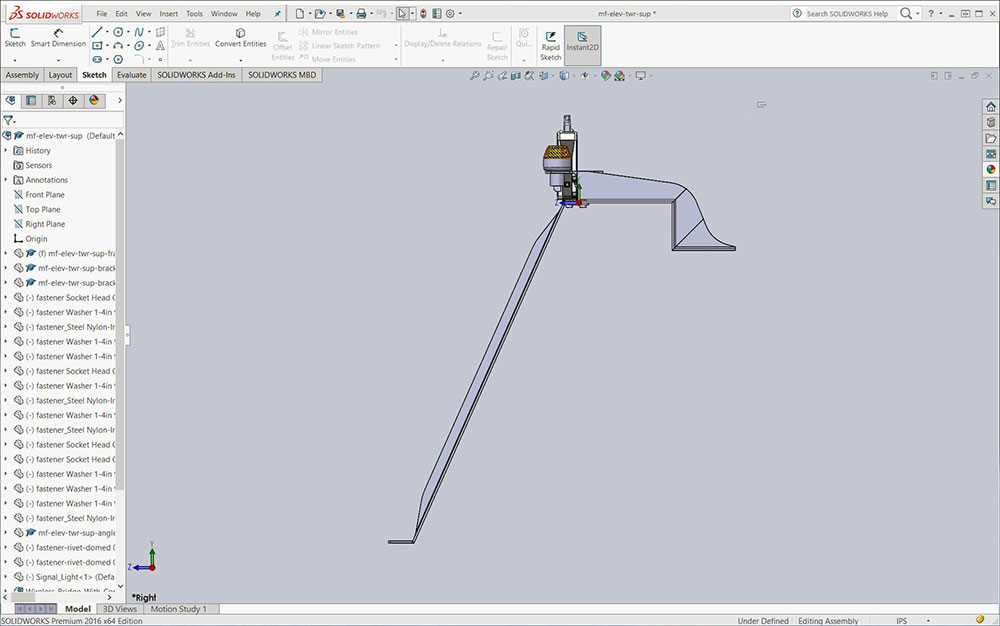5. Custom brackets need to be also made from scratch, which could be done by a profile, but in this case, quicker to just make in a sketch - tower support and light brackets