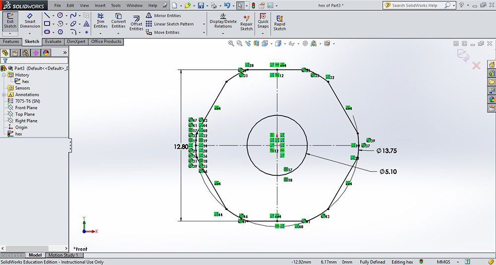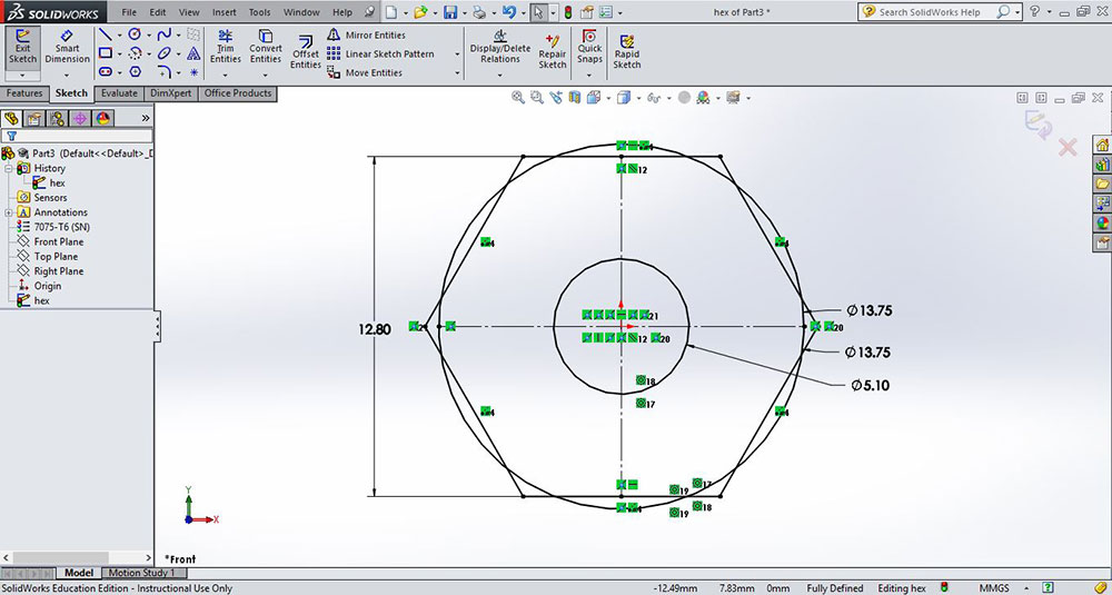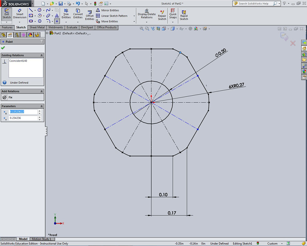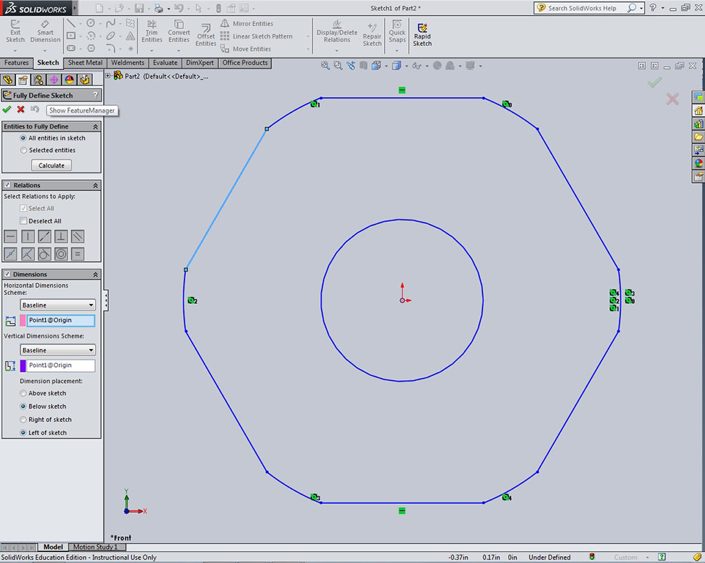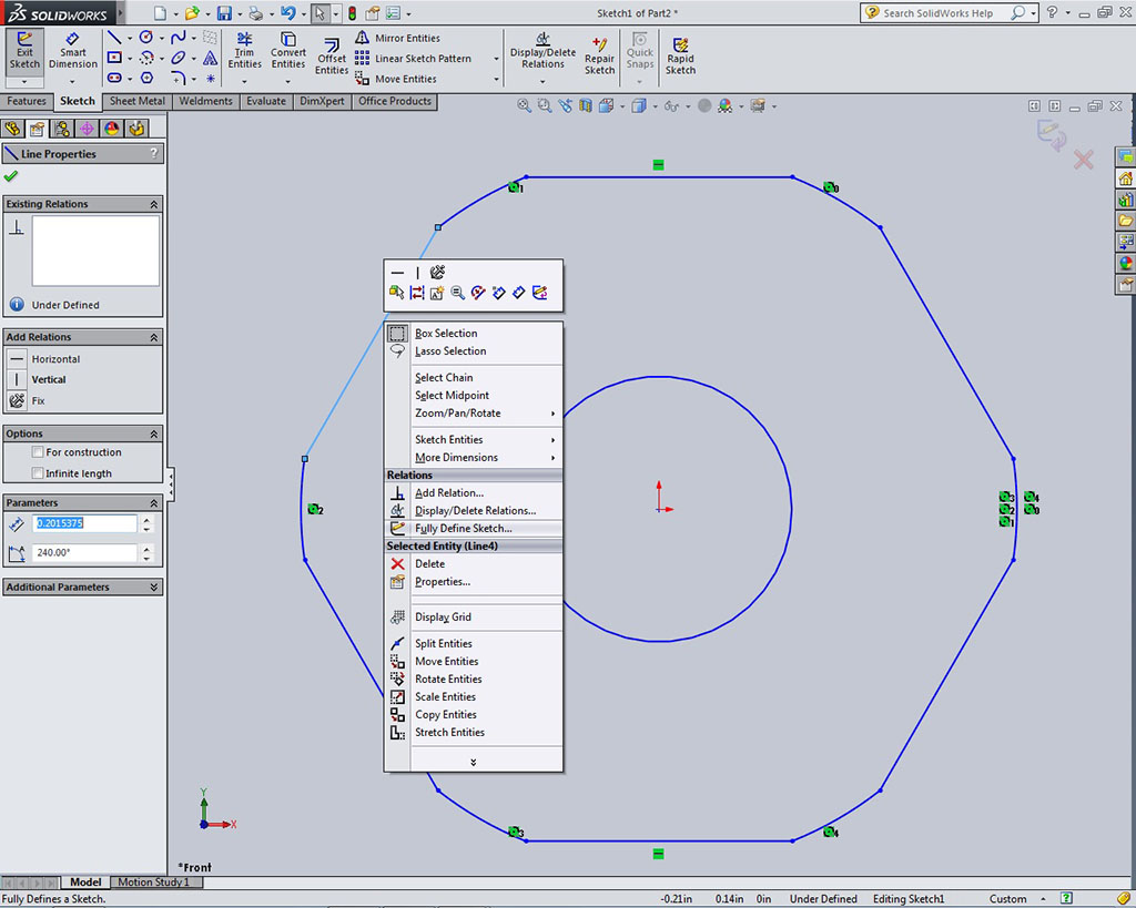 16. Right click on any part of the sketch and select "Fully Define Sketch" and