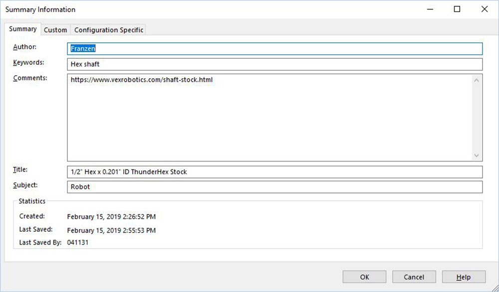 To design and build your drive system, you will most likely need bushings or bearings to house the axles that will hold the wheels, drive transfer method components such as sprockets, and gear box. Axle could be sketched out, or in our case with the sample using the Thunder Hex shaft CAD part file, it can be downloaded and made into a weldment profile to use wherever it is needed. Anything with a pattern that is used multiple times at different lengths, a weldment should be used. Other parts such as wheels, gear boxes, sprockets, spacers, etc can be downloaded with STEP file, imported, and used to create the assembly of your build for the sample robot and/or your custom robot.