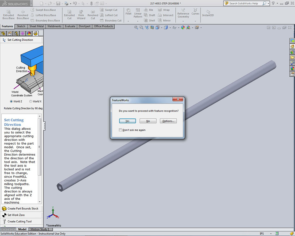 4. Then if necessary in the feature works tab, select appropriate options and finish with clicking on the green check mark to initiate feature recognition process