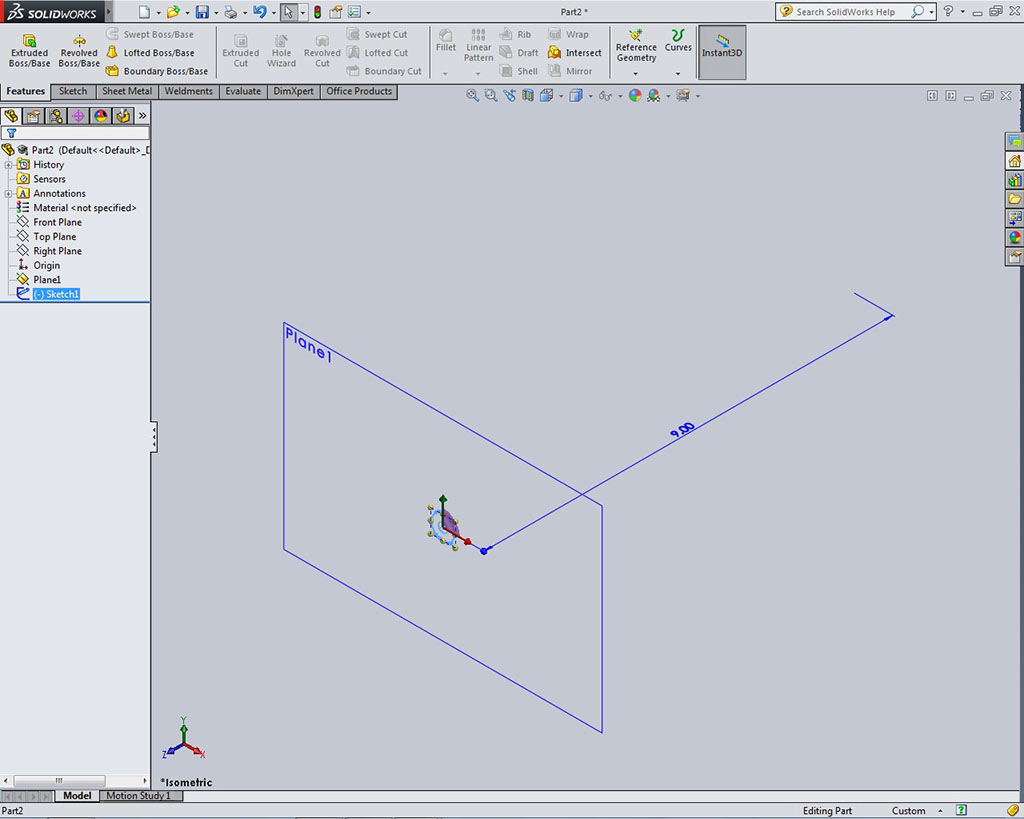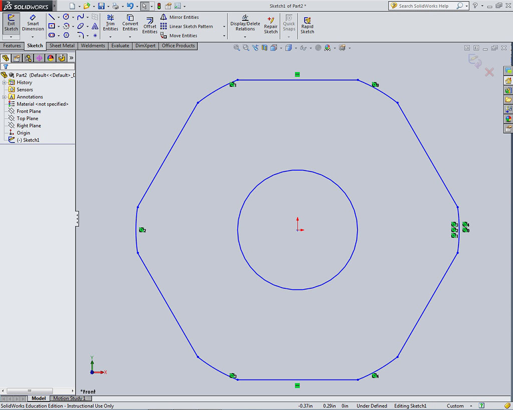8. In our example with the hex shaft sketch on a offset plane 1, 9 inches from the front plane and ideally best practice would be to move the sketch back to the front plane