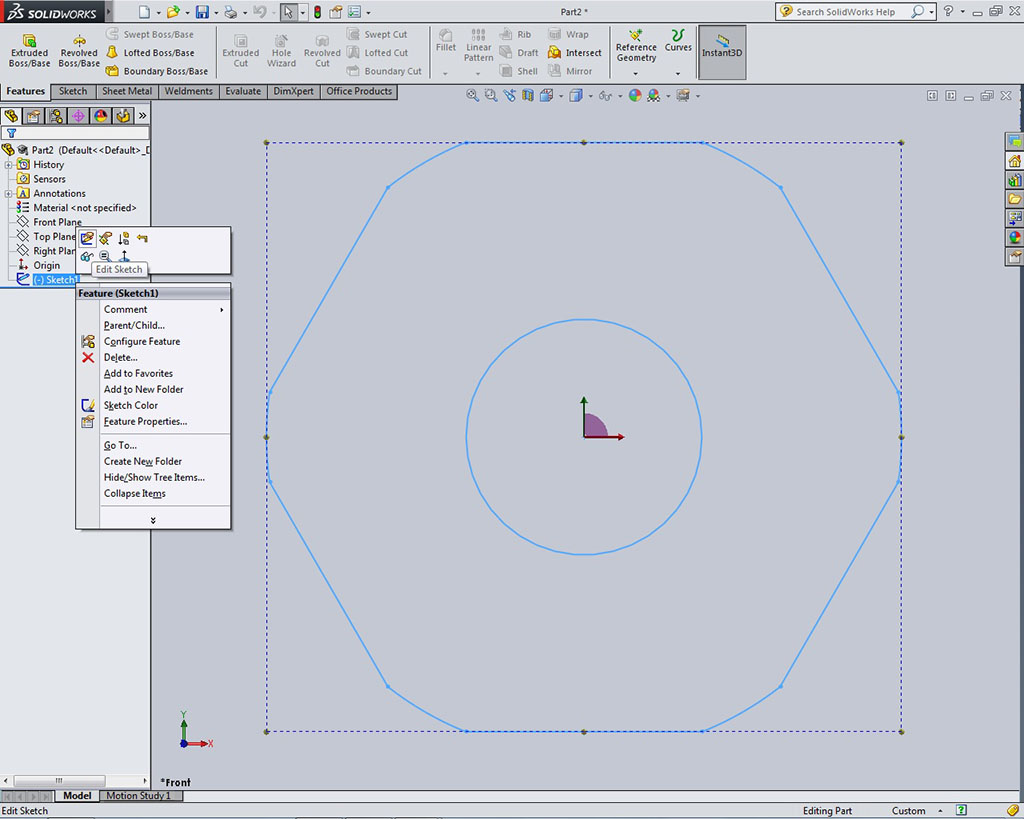 14. Right click on your sketch in the feature manager tree and select Edit Sketch