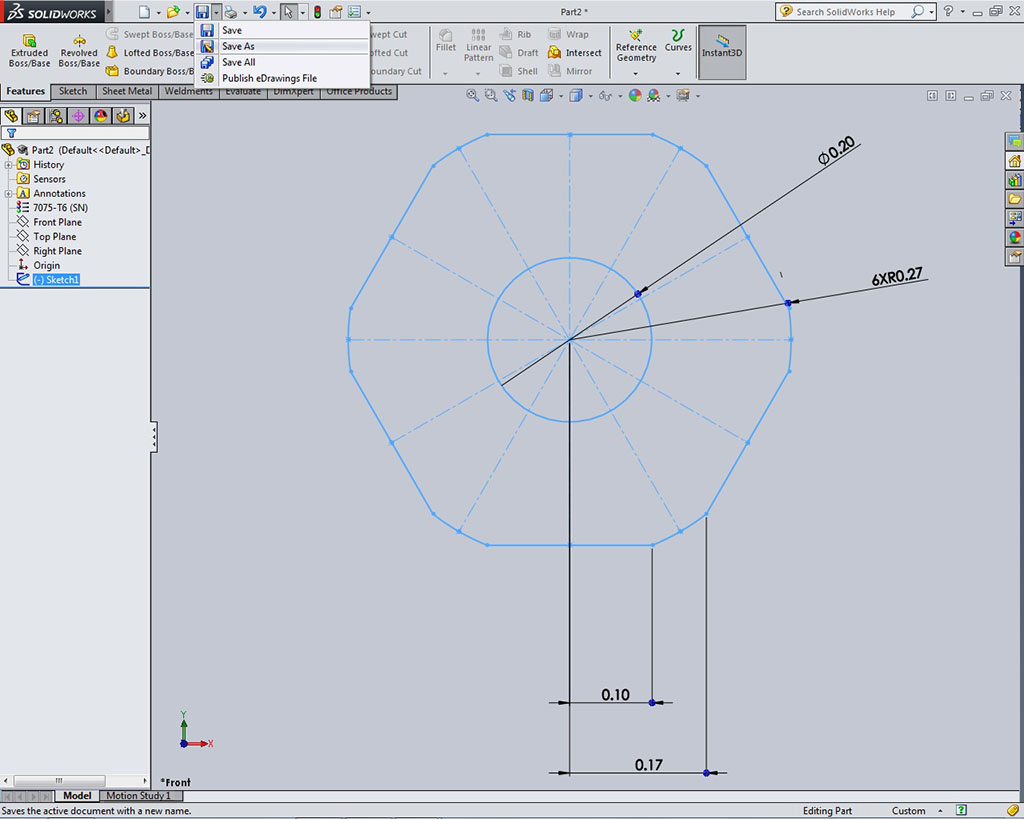 22. Once you have all information in 2D sketch done, exit sketch, select sketch in feature manager tree, then Save As, and