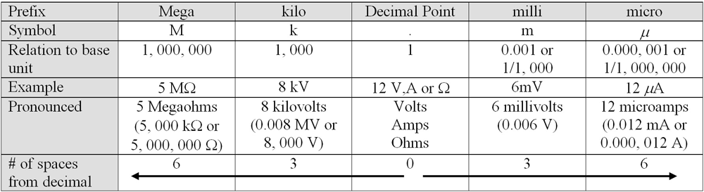 The above circuit samples and accompanying calculation handouts were designed with simple easy numbers so you could focus on the process. It is very rare that electrical circuits have easy numbers to work with. In fact a lot of time in electronics, some numbers you work with will be either be very big or very small and that is where units of measure come in. As reviewed in the above Circuit Theory Power Point presentation, and the next handouts includes this, so you will need to apply