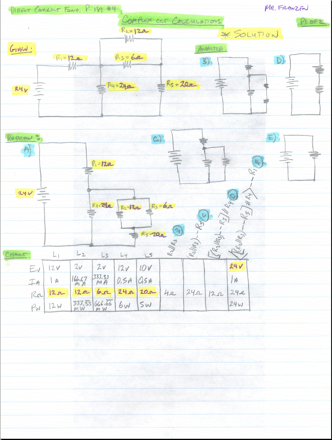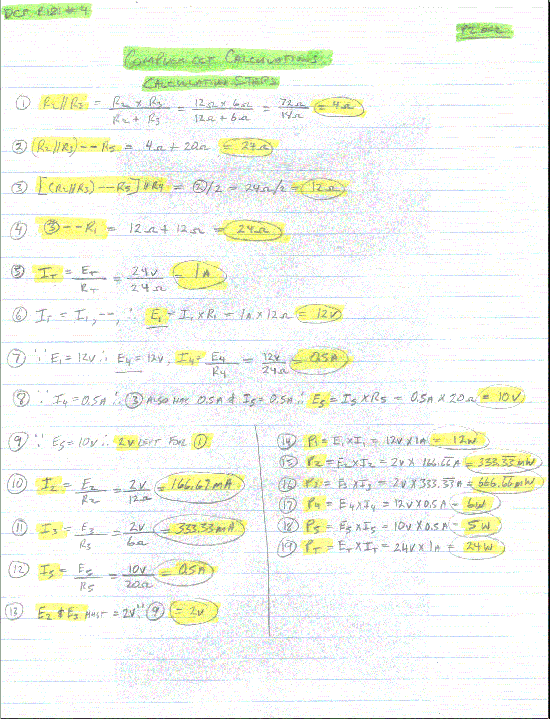 Complex Series/Parallel Analysis and Calculations you will do the same except this time actually calculate all the unknowns using calculations, circuit diagram simplification and circuit analysis.