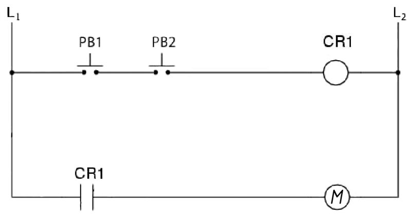- Draw a neat circuit ladder diagram of a stop, start motor control circuit similar to the one in the Circuit Design presentation slide that talks about latching circuits