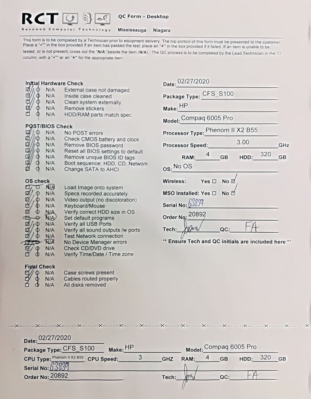 maintenance tracking sheet, and attach a printed spec sheet to tracking sheet - System Check: Do a clean boot, checking that system, keyboard, mouse, optical drive, and monitor are all working