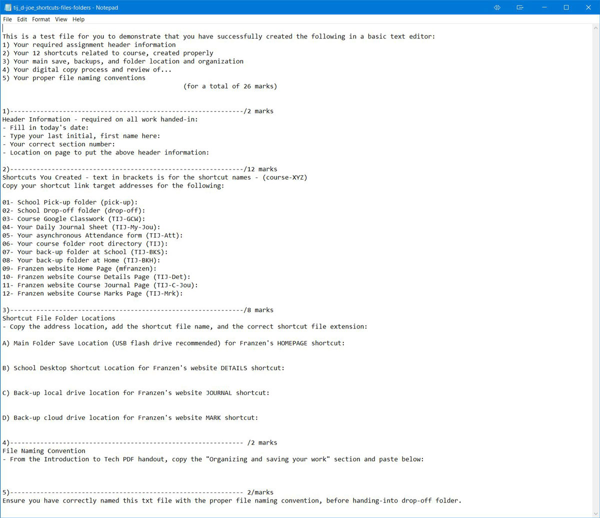 - Remember any digital content to include title, name, date, section, along with file naming convention.