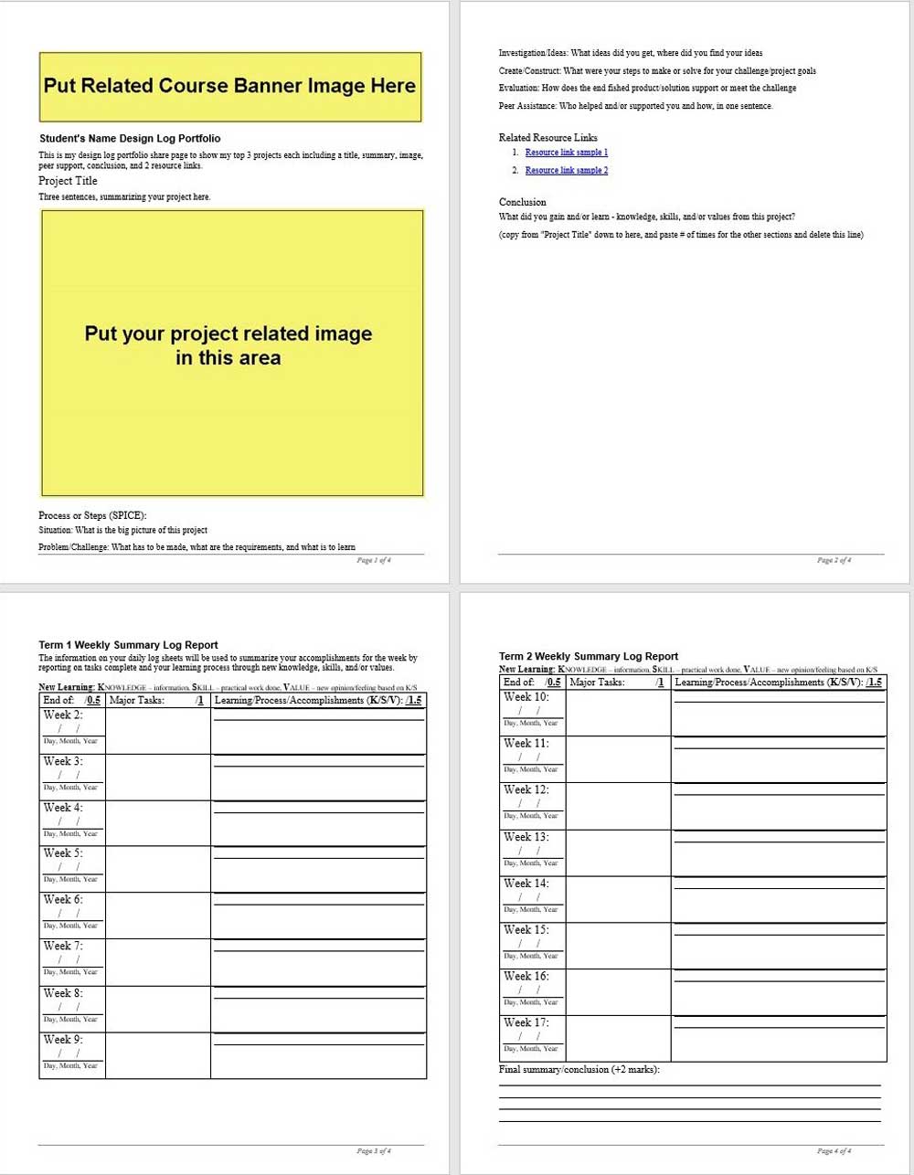 - You may use the following MS Word portfolio tempate which outlines what each project item should include and weekly journal summary table