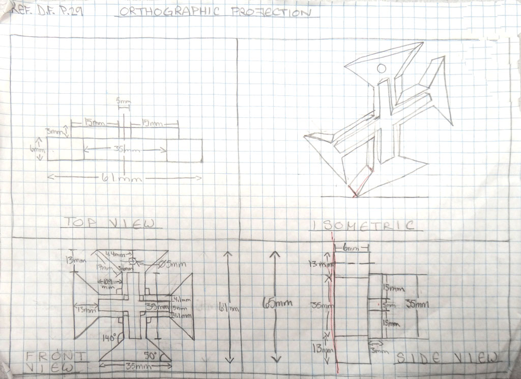 | Orthographic - sketch showing final design with 3 views, dimensions, and isometric | 20 |