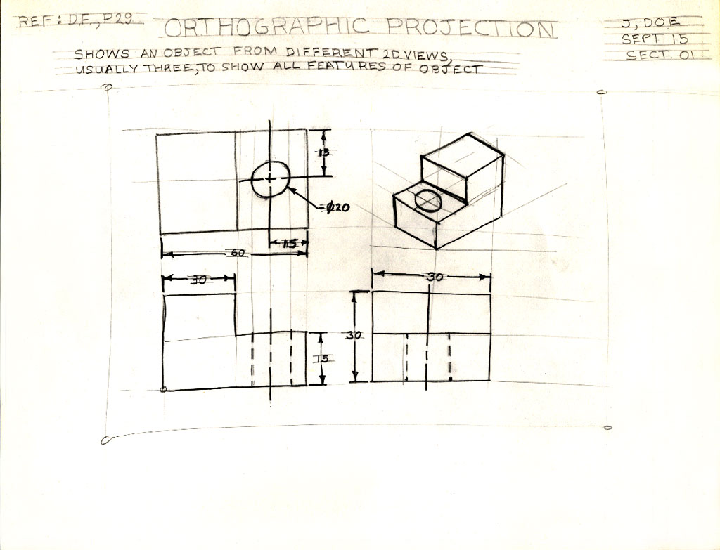 | Orthographic Sketch Practice - 3 ortho views, 1 ISO, and dimensions | 15 |