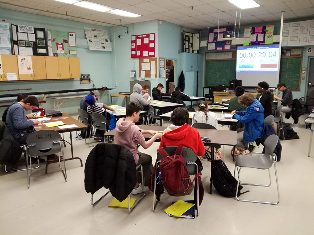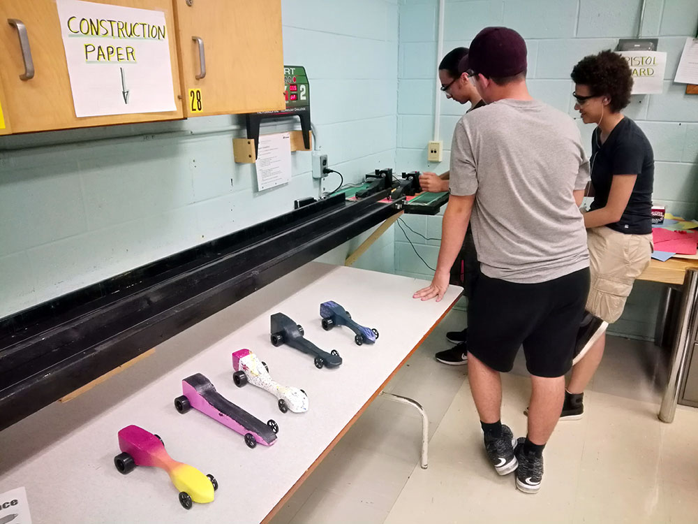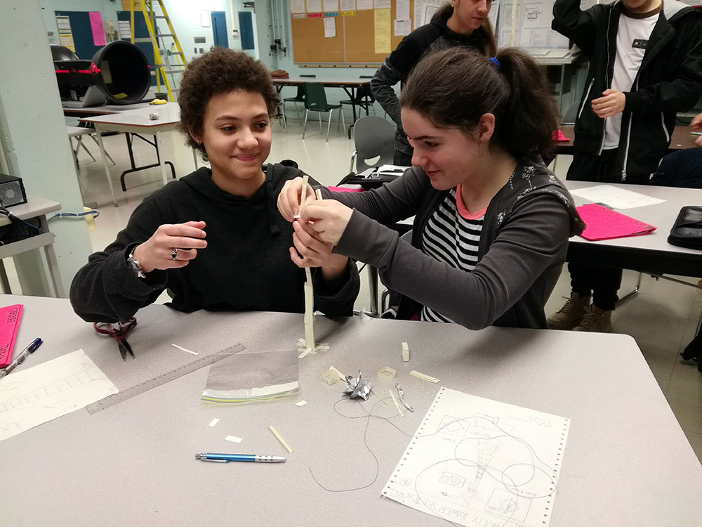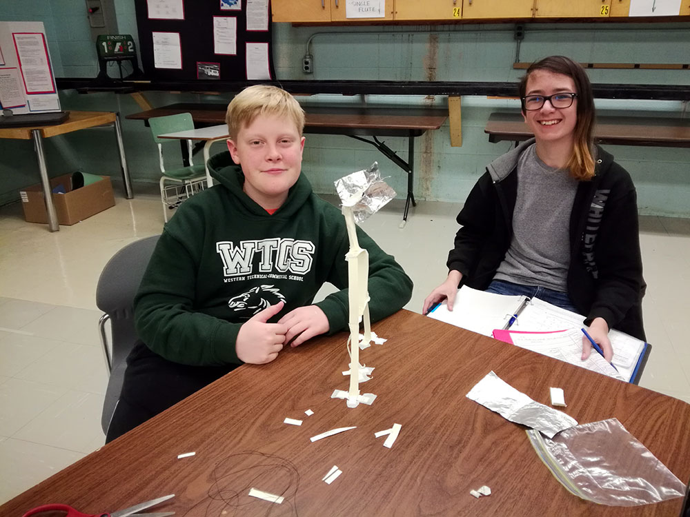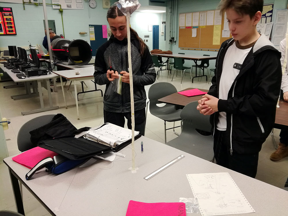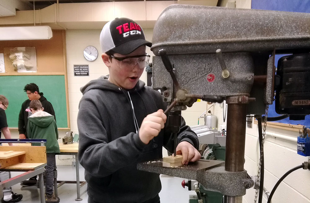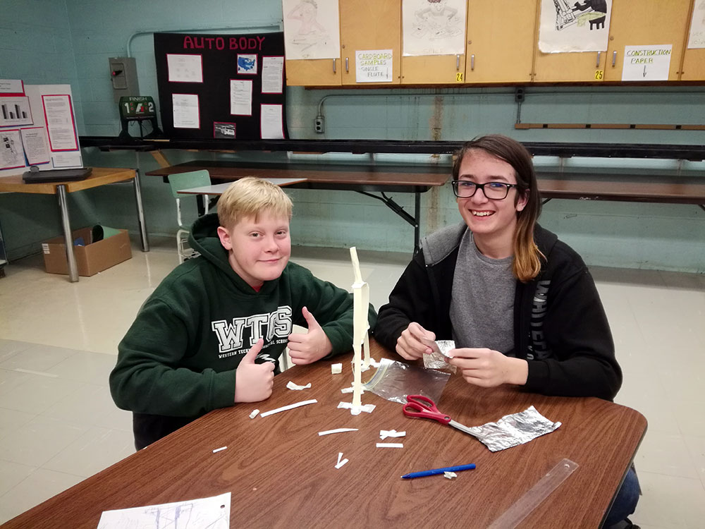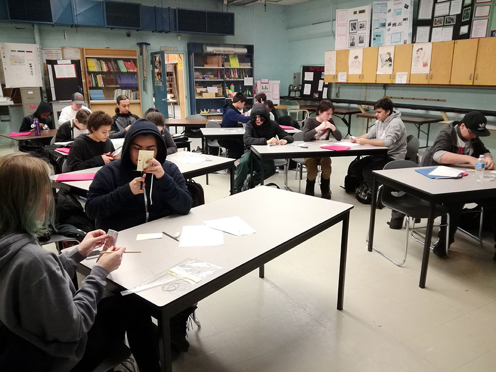 This program uses two adjoining rooms, a classroom and work shop. Both were revitalized in 2017-18 with equipment, tools, work benches, computers, and furniture. Students familiarize themselves with with the rooms and their resources. The classroom, room 166, consists of a theory area, computer lab, prototyping area, project testing area, Co2 dragster digital race track, wind tunnel, and library area. The work shop, room 165, consists of bench work areas, wood machines, table vices, multiple portable dust vacuums, CNC router, ventilated paint area, slop sink and Bradley Hand washing area, material shelves and cupboards, tool cabinets, and safety equipment resources - aprons, safety glasses, dust masks, hearing protection, eye wash station, etc. With both of these rooms, students use the resources to learn, research, design, build, and come up with solutions to given technological challenges. Techniques, process, tools, machines, computers, teamwork, co-operation all support students in this excellent, well organized and safe working environment/facility.