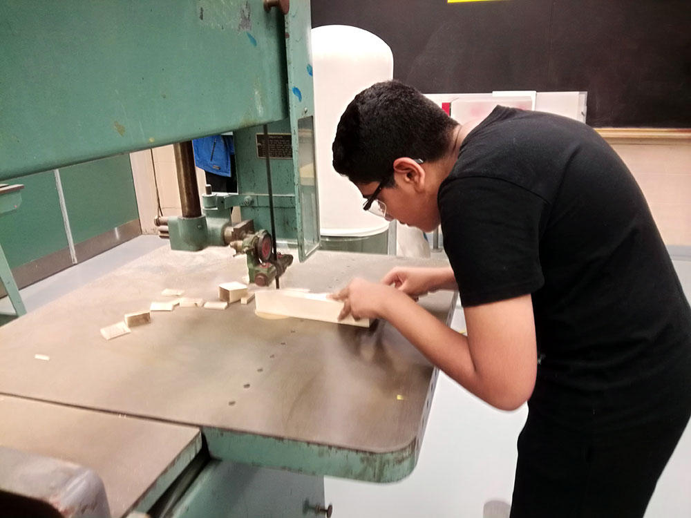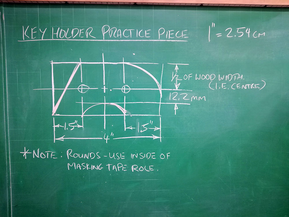 Before students work on their key holder project, they are to layout and and safely demonstrate/practice cutting out a small wood practice piece using wood cutting machines we have in the work shop. Machines are reviewed, safety contracts must be signed prior to use, layout of cuts are required, and proper demonstration of machine process must be demonstrated before students are allowed to use machines for future course projects.