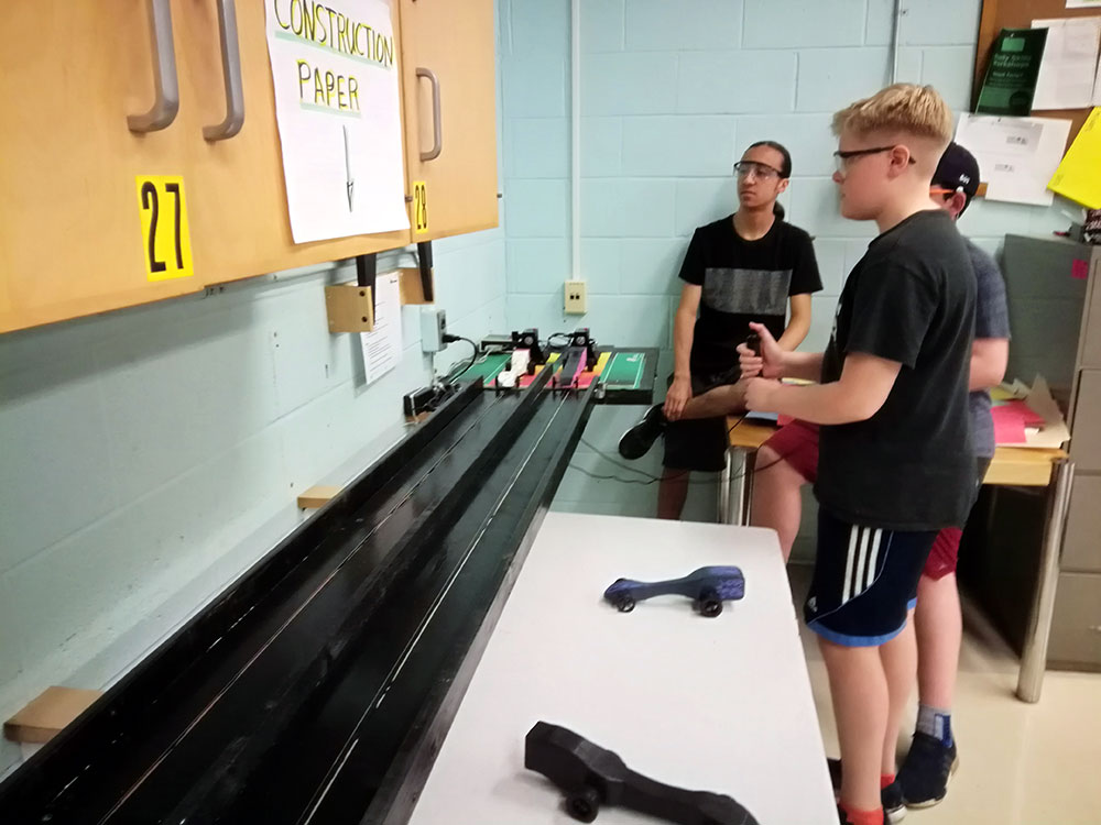 Students use all their skills and experience learned in class to design, build, finish, race, and present a portfolio of their dragster. Everything from research, team work, idea sharing, co-operation, planning, time management, tool machine use, communication, presentation, and portfolio showcase is used to complete the co2 dragster project with the dragster being built with TSA Competition rules and regulation for safety and fairness for all. Through this process students apply what they have learned to practice and show what they learned and well they have learned it.