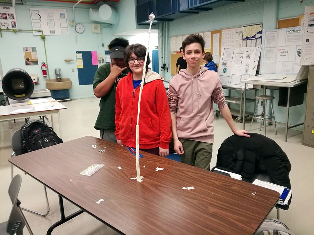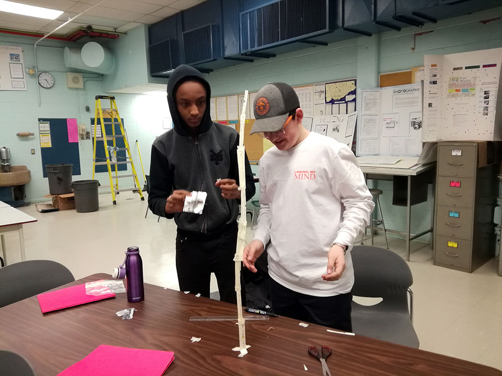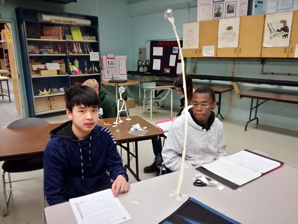 The Faulty Towers project is a great introduction to the design process in tech. Students learn to come up with ideas, sketch them out, refine, collaborate, co-operate, and build with their partners fostering teamwork and responsibility. Students get to apply their several days of research, ideas, and planning to compete in a single period to build the tallest tower.