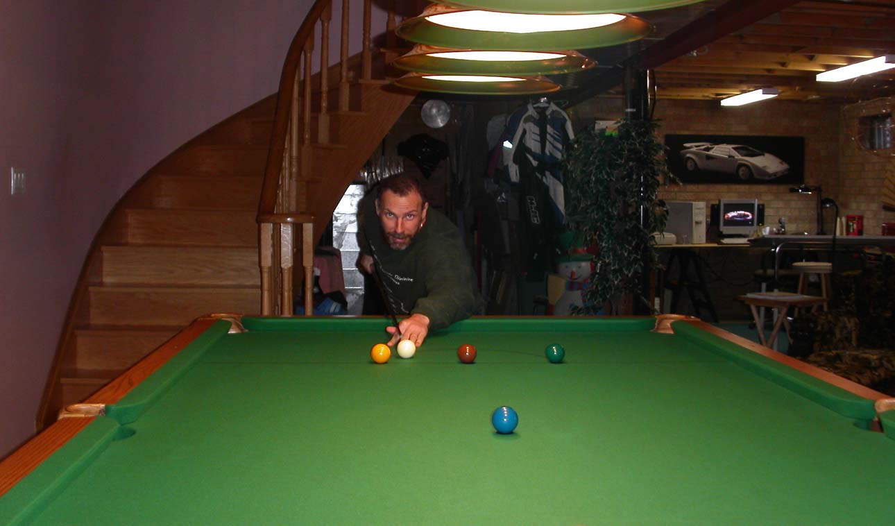Several years back I picked up a 5 * 10 solid oak Dufferin Snooker table. Pool (rules) is more commonly played then in comparison to Snooker here in Canada. It is a more challenging game as it uses the smaller 2 1/8" as opposed to the 2 1/4" balls along with the smaller 10-11mm pool cue tips. The table and the pockets also make for a challenging game. Commonly on regular Canadian pool tables the pockets have chiseled edges, but my table has refined rounded corners. Again this makes for a challenging shot, to put balls in the corner pockets. For some people this tends to be a turn-off, but for me the exacting precision of skillful shots is a challenge I always look forward to. In Snooker or Pool not just having the skill to play is not enough, you also need to have a strategy and shape/position in order to win. Check out these great snooker play by Ronnie O'Sullivan. I also enjoy playing fooseball a lot of time my brother-in-law and I go head to head working-up a bit of a sweat and competitively compete for the win - all for fun. I also enjoy a little poker each month playing tournament style on a poker table I designed and built a few summers ago, and if I have a bit of time enjoy a game or two of Call of Duty on X-Box 360 and more recently World of Tanks with X-box 360 and the I-Pad but perfer the PC version.