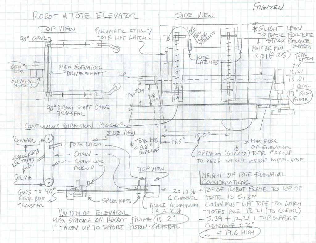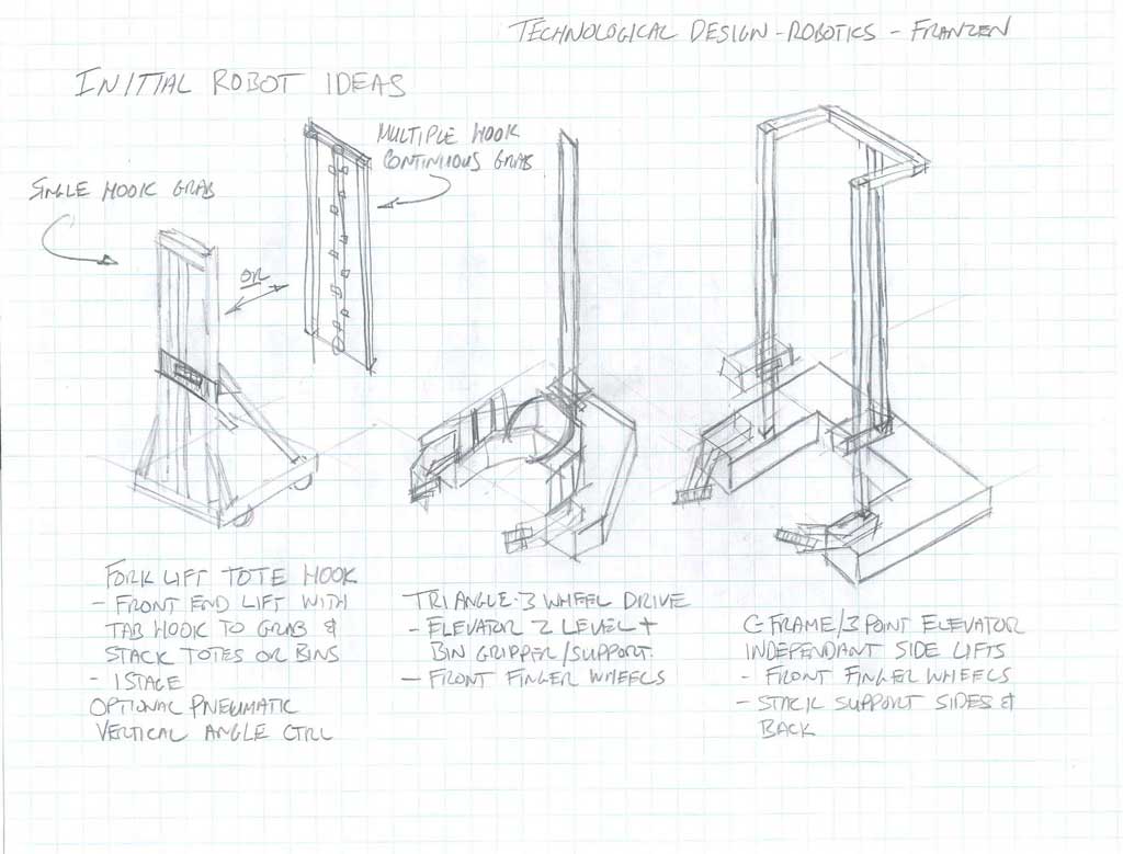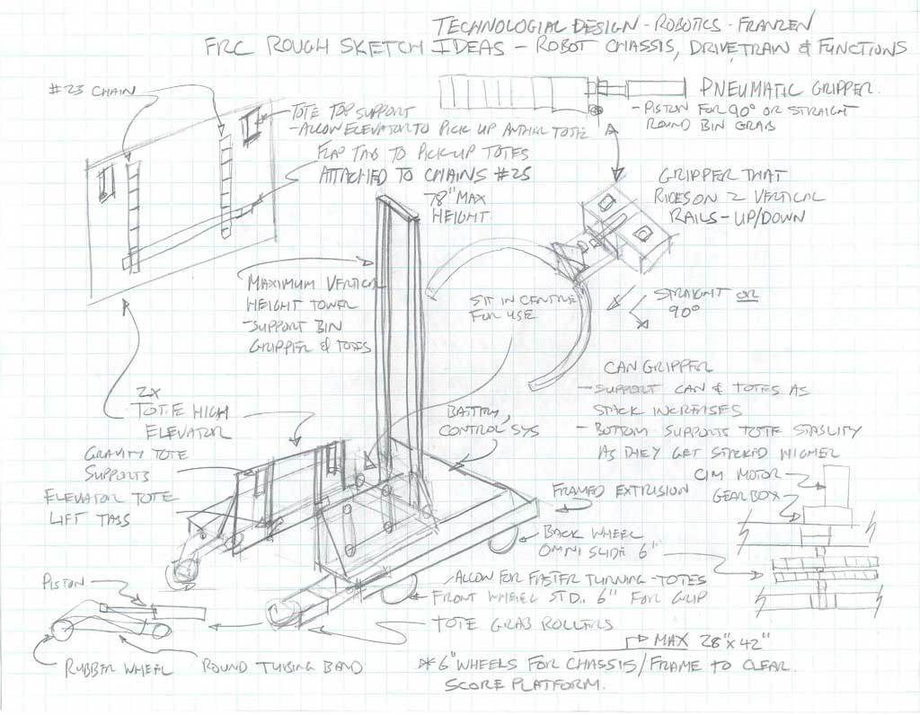 These sketches were done initially when starting with design of robot, and continued to be sketched and rough notes throughout the process of the build.