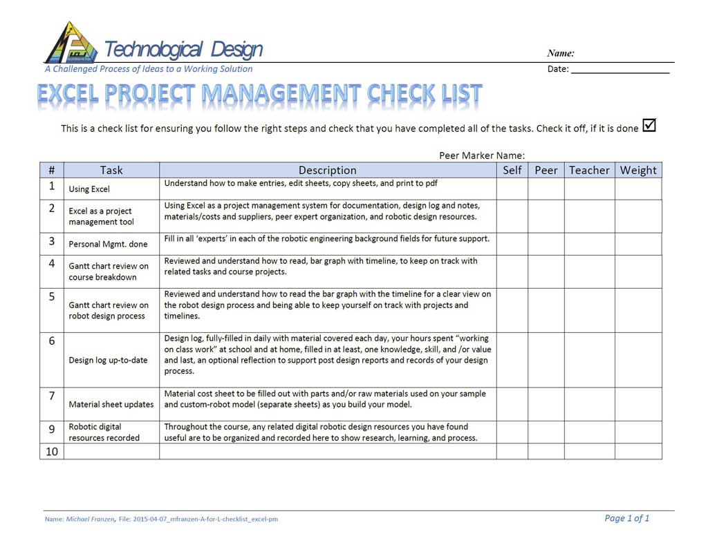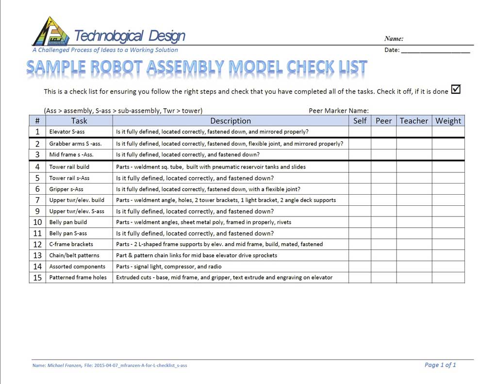 Below are two sample check lists, which are designed to allow students to follow a process, self and/or peer check work, and make sure that tasks and requirements are getting done.